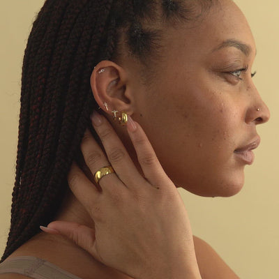 Bold Gold mini hoop earrings that hug your ear perfectly. Perfect to wear alone or paired with other dainty earrings.