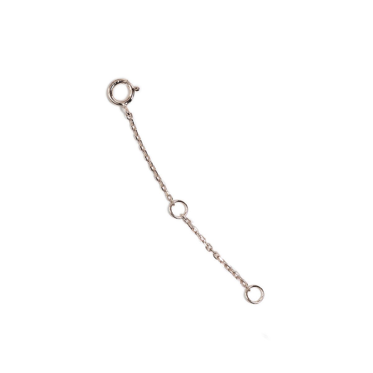 Silver chain extender for necklaces, adds in 1in (2.5cm) increments. Lightweight and easy to attach to any chain.