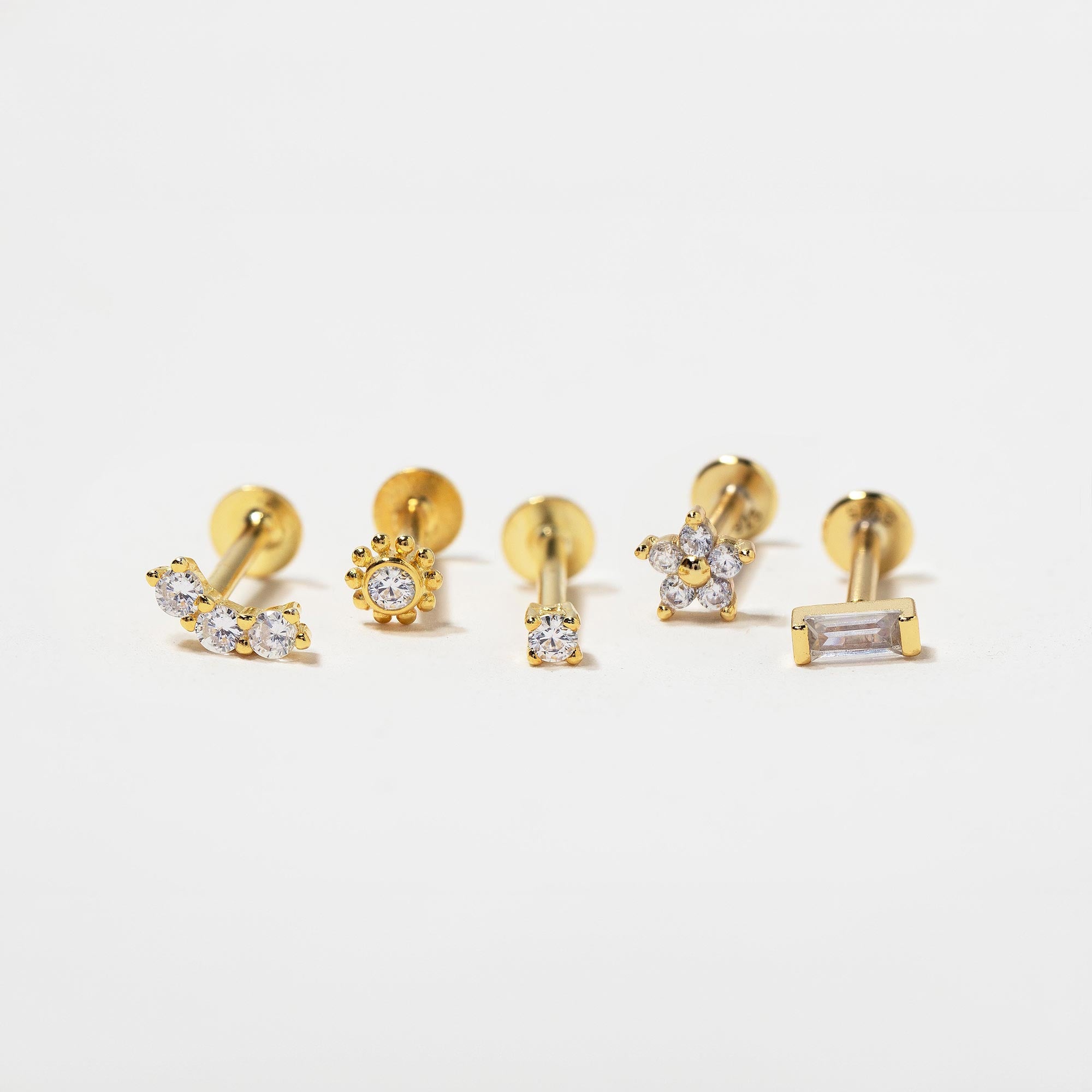 This classic sphere flatback single stud is set in quality 14K gold. Worn on helix, forward helix, flat, tragus, conch and upper lobe piercings.Wear on upper-lobe, helix, conch piercings.