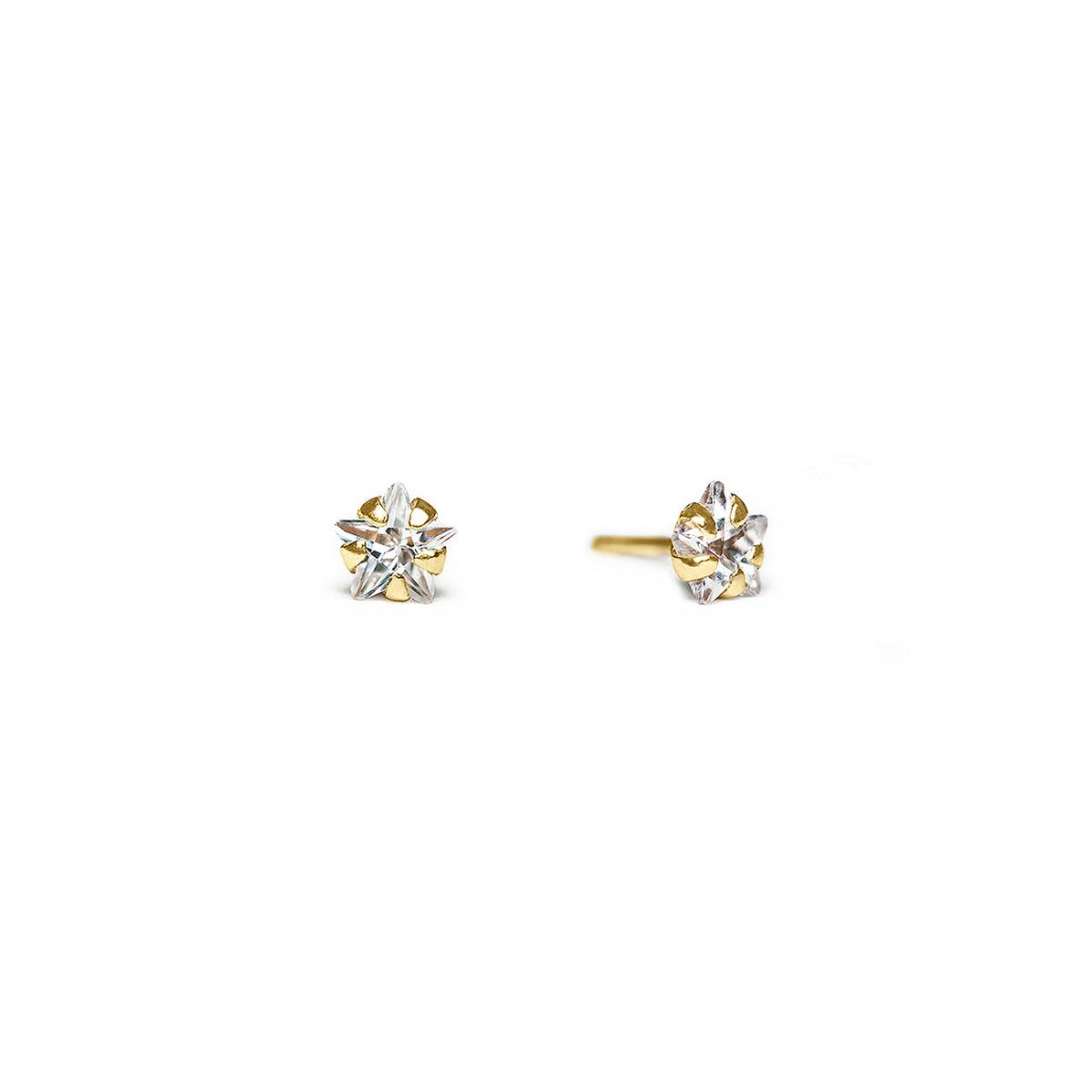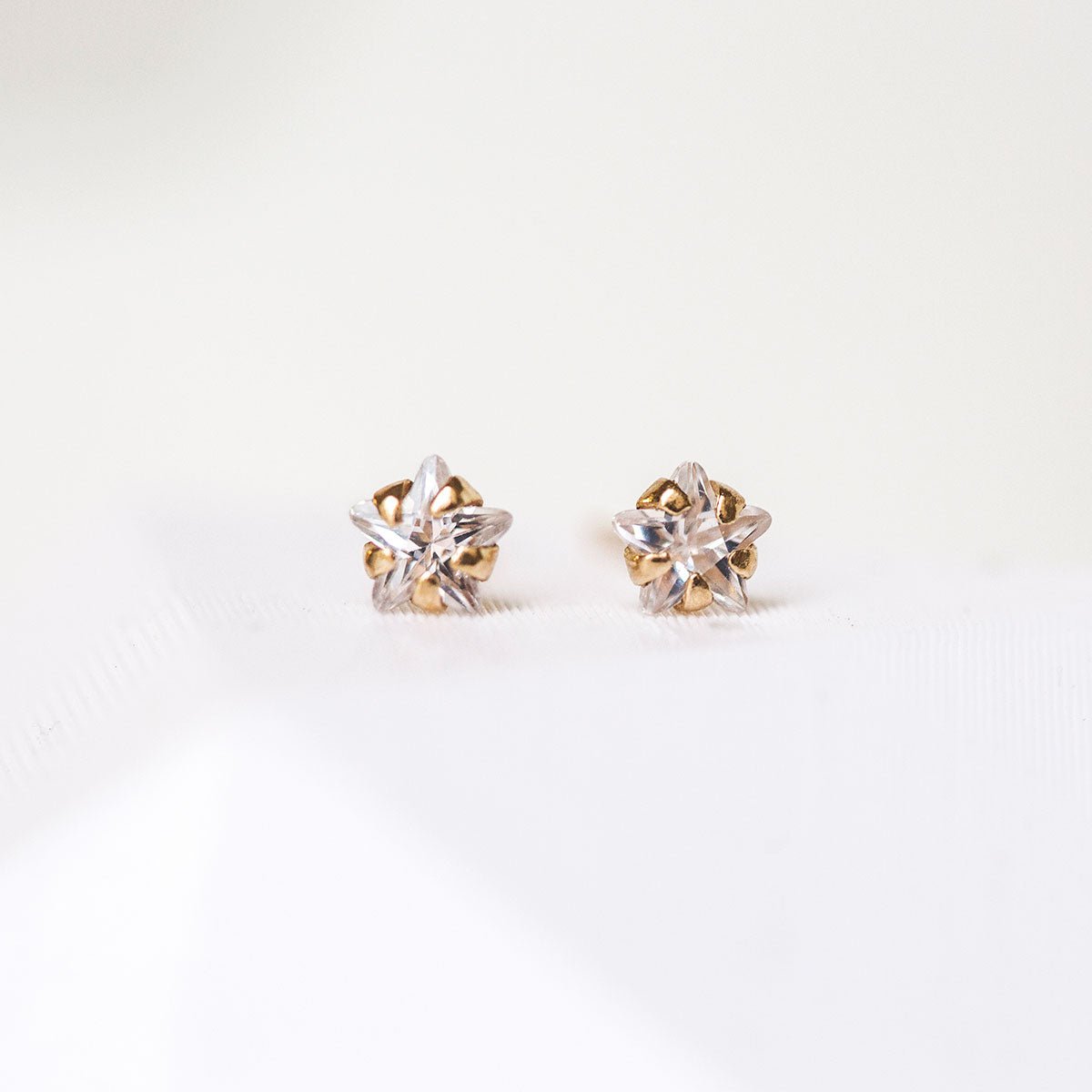 Sleek and minimal, these crystal star studs are made with a rich solid 14K Gold. Perfect for a first or second piercing.