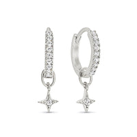 Teeny Tiny Star Flare dangles off a thin crystal Silver huggie hoop earring. Wear for your first or second piercing.