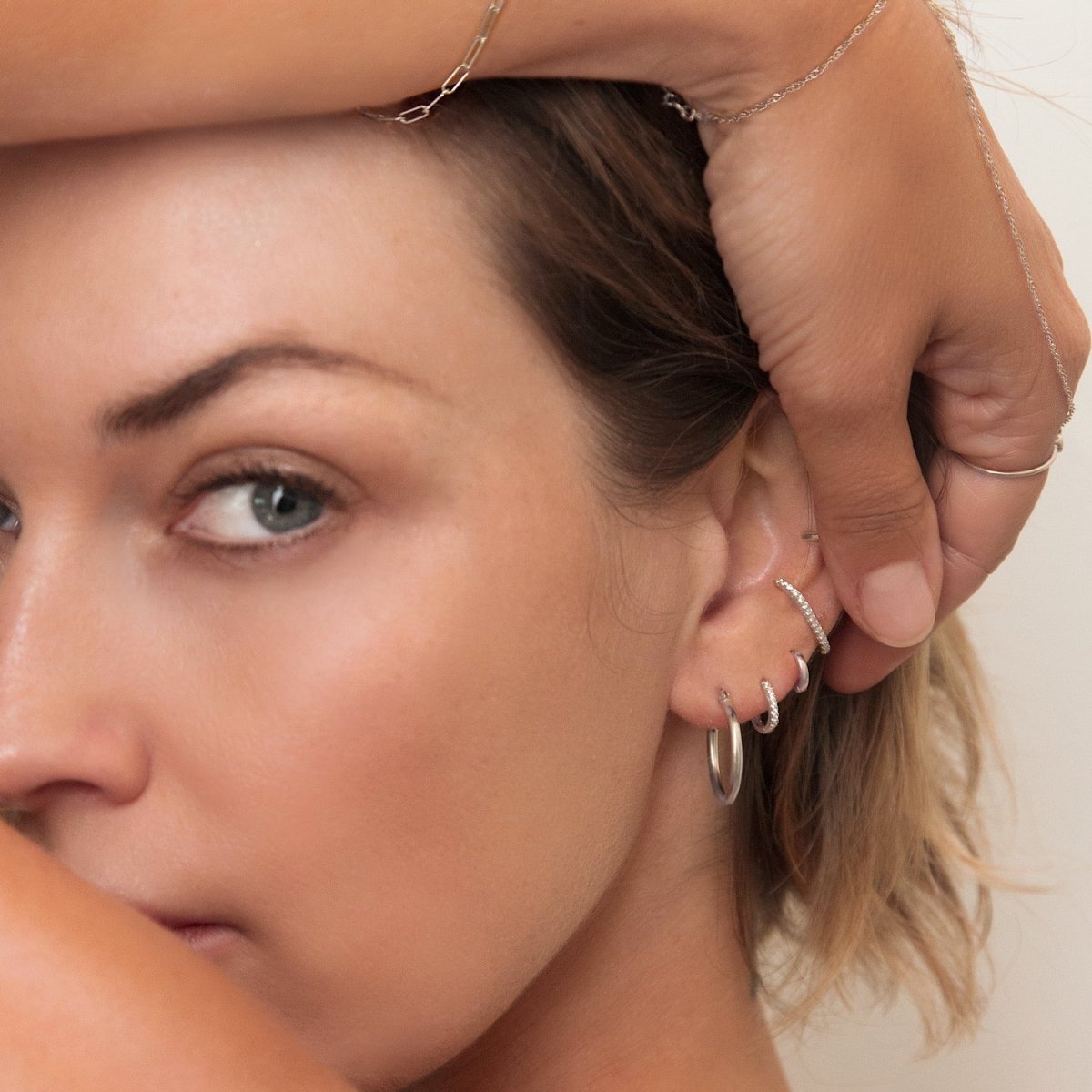 Bold Sterling Silver hoop earrings that light-weight and easy to wear. Easy to put on and take off. Great to pair with smaller Huggies.