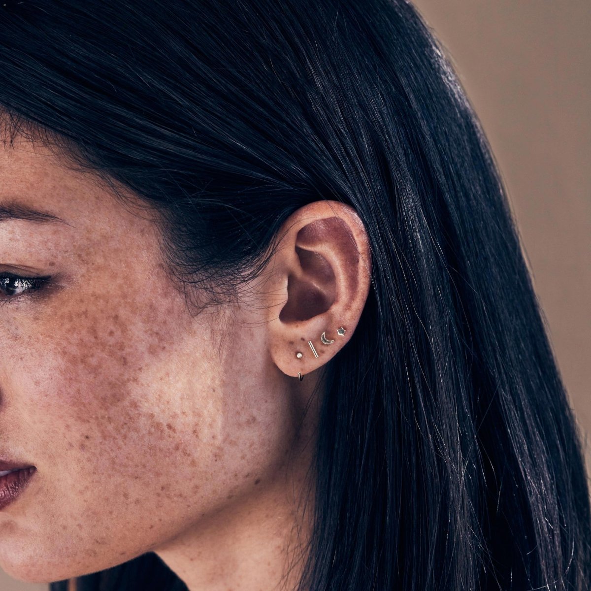 Dainty Sterling Silver Ball Sphere huggie hoop earrings that hug your ear perfectly. Easily adjustable and comfortable to wear. Mix and match with our wide selection of dainty earrings to create unique ear stacks.