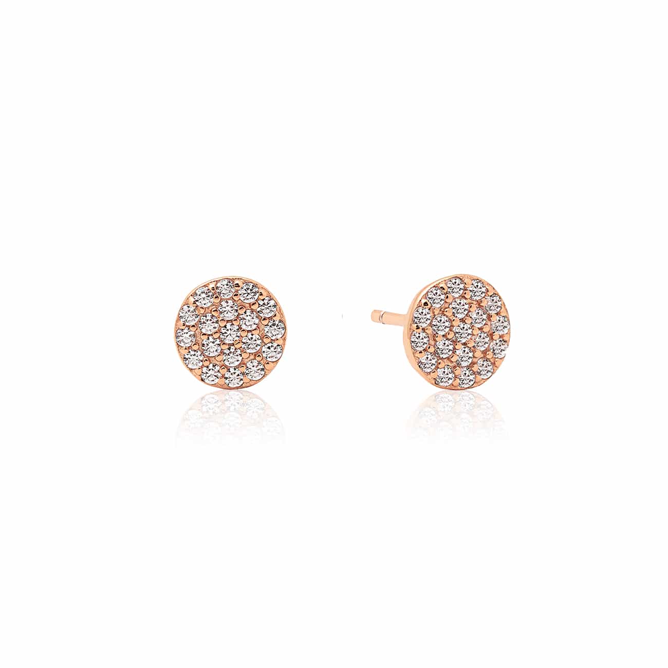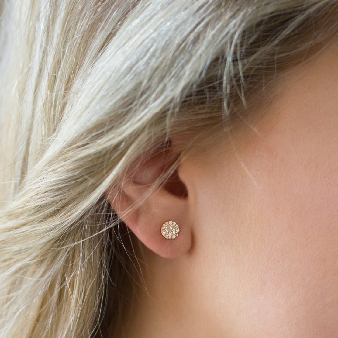 Classic round pavé diamond solid rose gold studs set with ethically sourced quality diamonds. A timeless everyday essential.