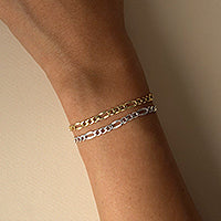 Diamond-cut facets gold figaro chain bracelet offers an intricate, feminine touch. A timeless piece, perfect stacked with others or worn solo.