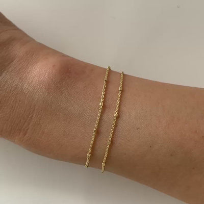 Minimal and dainty, this gold double chain wrap bracelet features delicate metal beads that add subtle sparkle. Perfect for layering or wearing alone on any occasion.