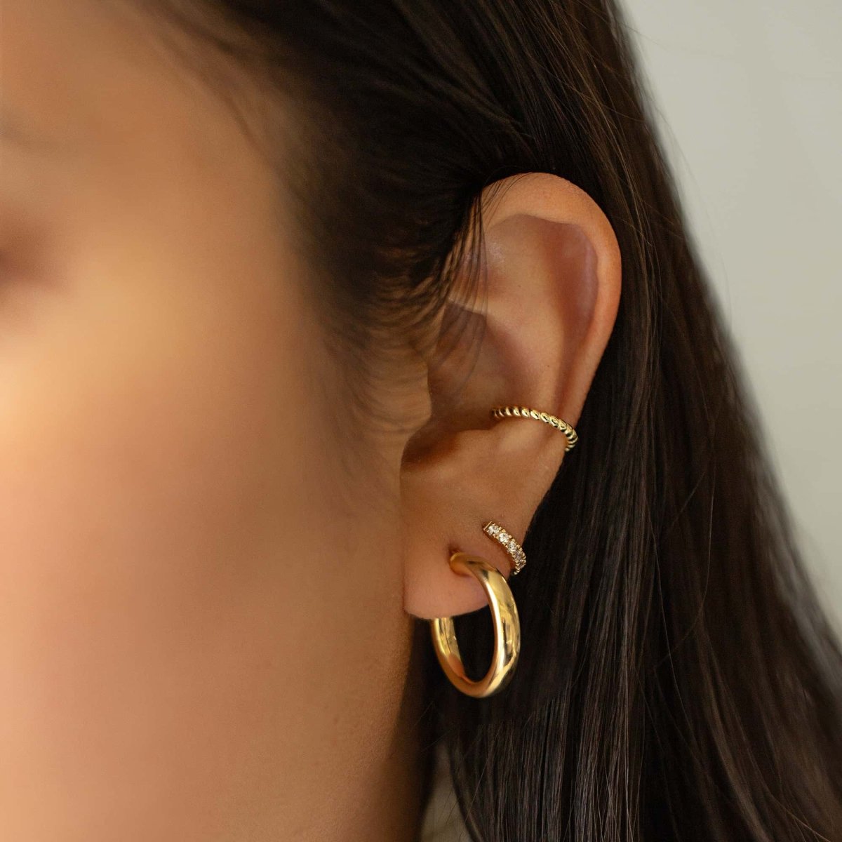 Classic Rope Gold Ear Cuff that will hug your conch perfectly. Perfect to wear alone or paired with other huggie earrings. Adjustable sizing.