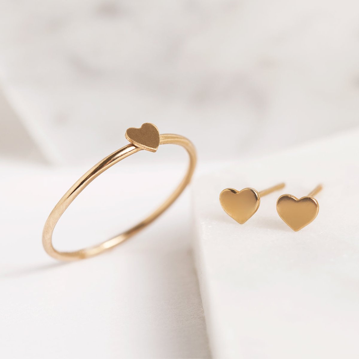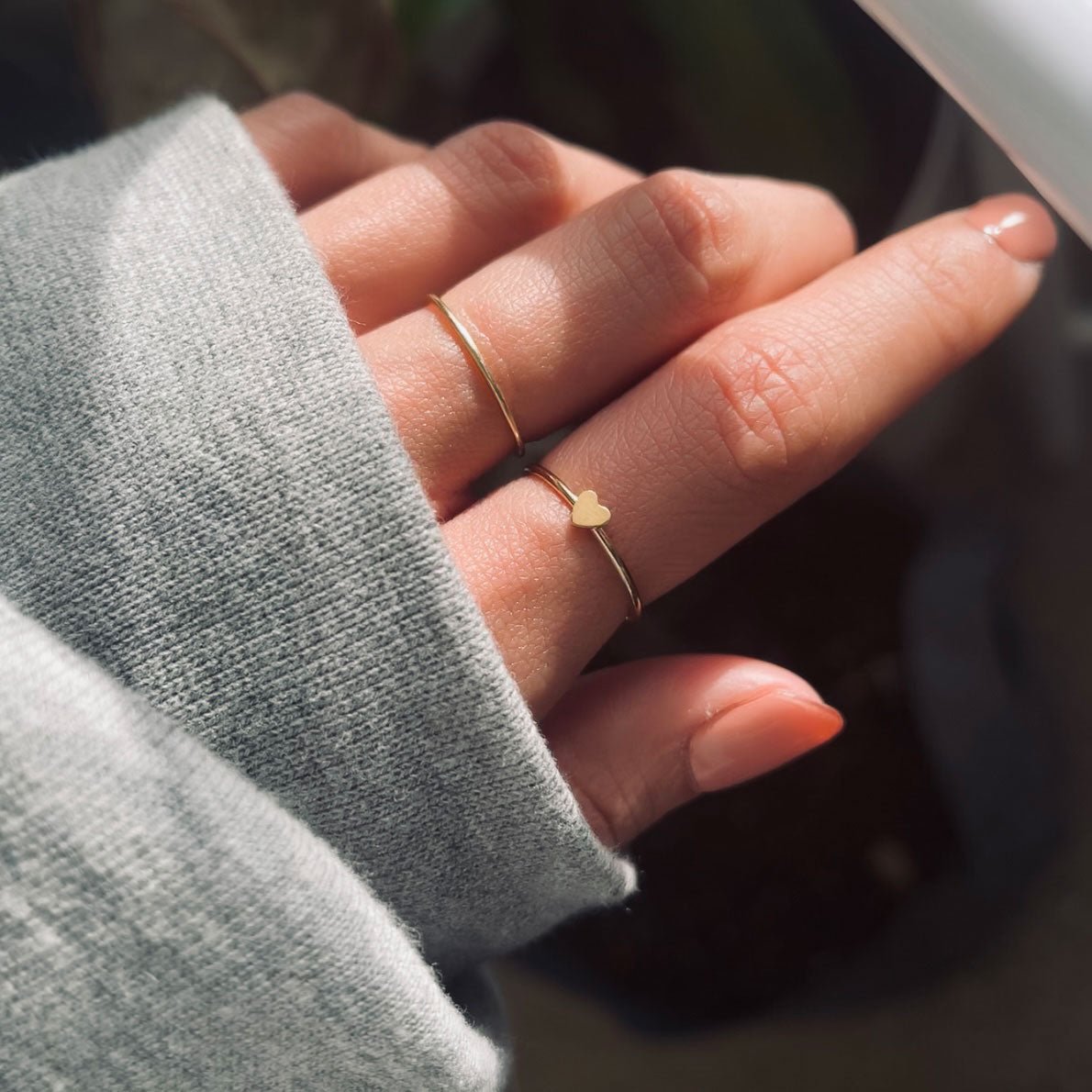 A modern tiny heart on a classic thin band. A must-have for Stacker Rings. Thick 14K Gold plating will make this ring last a lifetime!