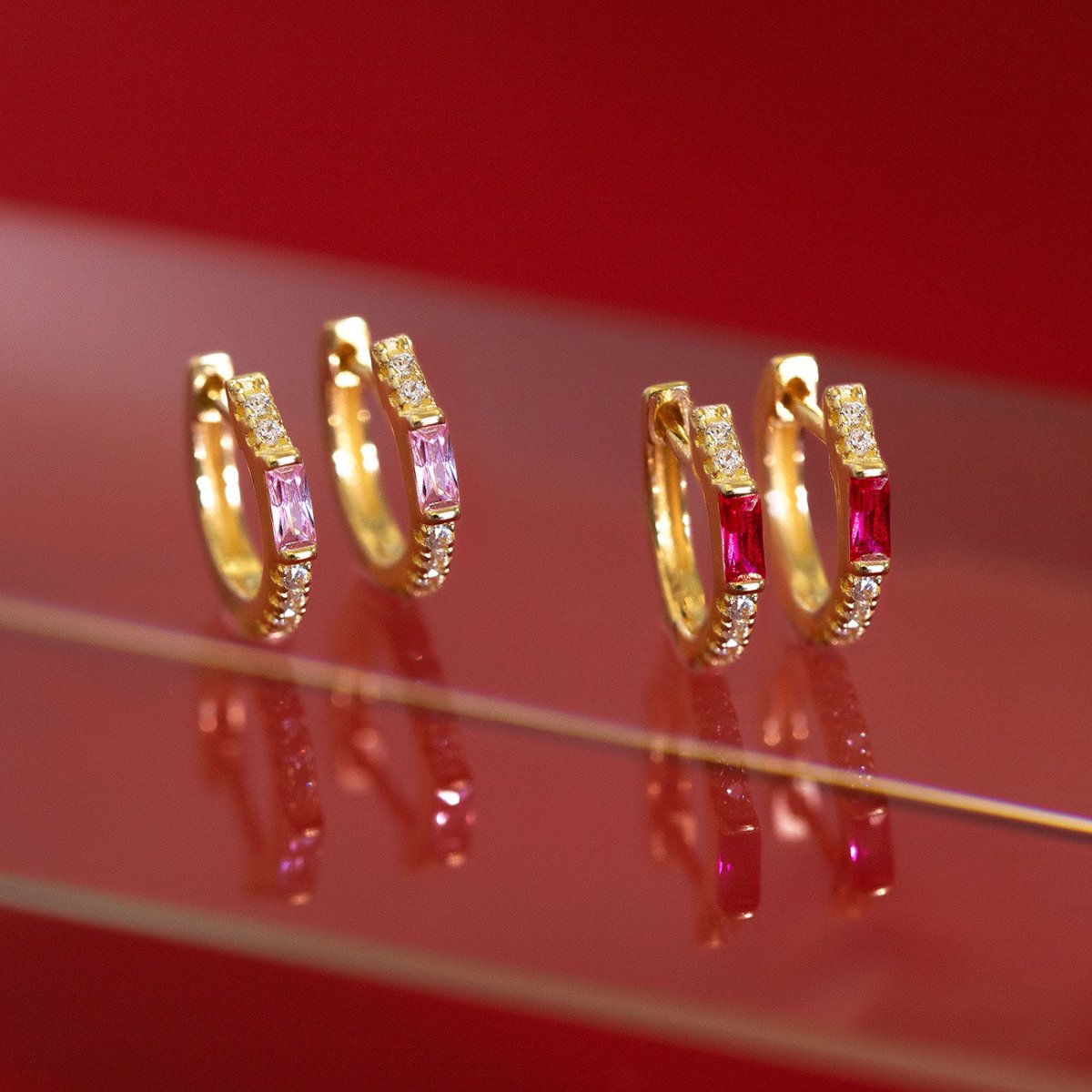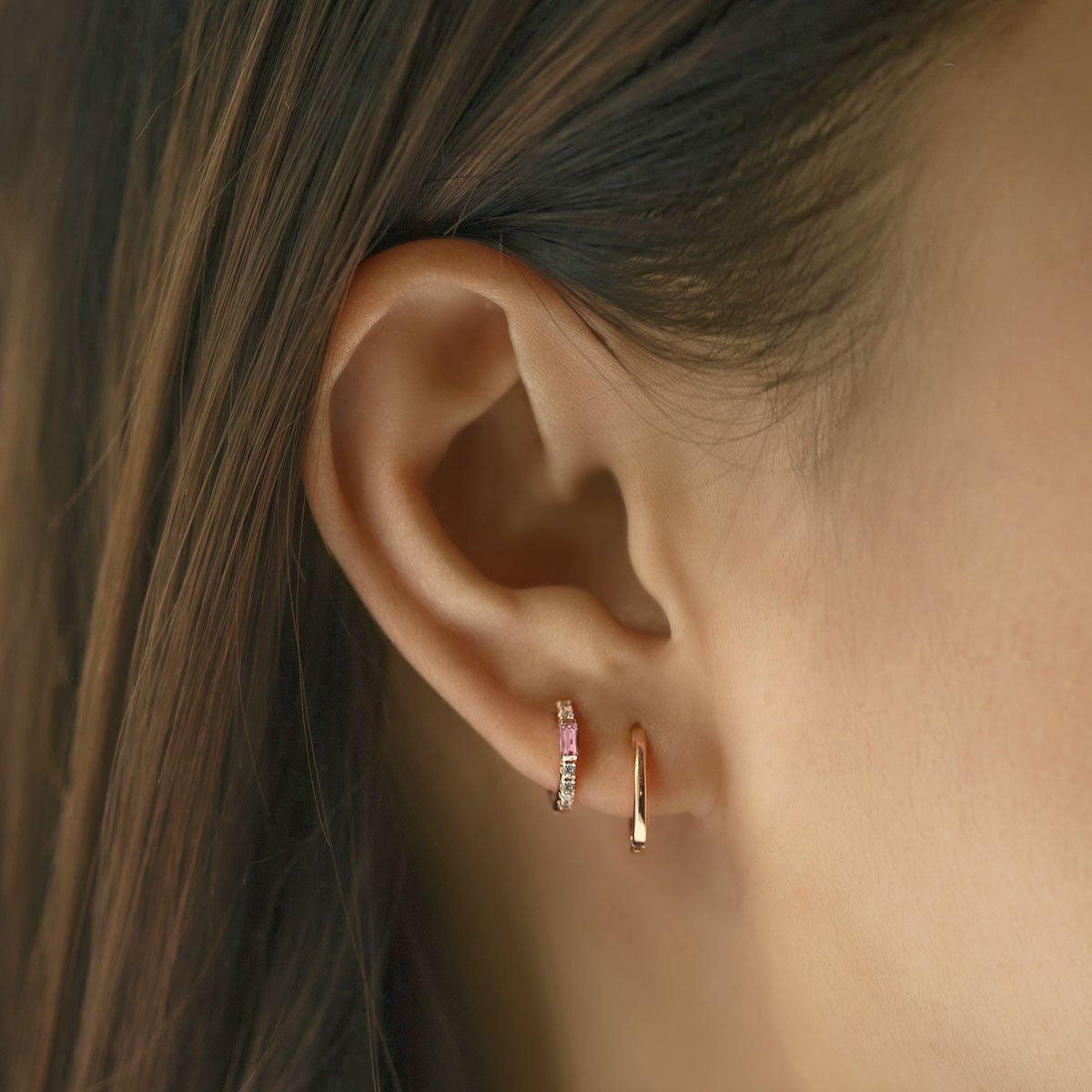 Gemstone Baguette Huggie Earrings Pink Sapphire