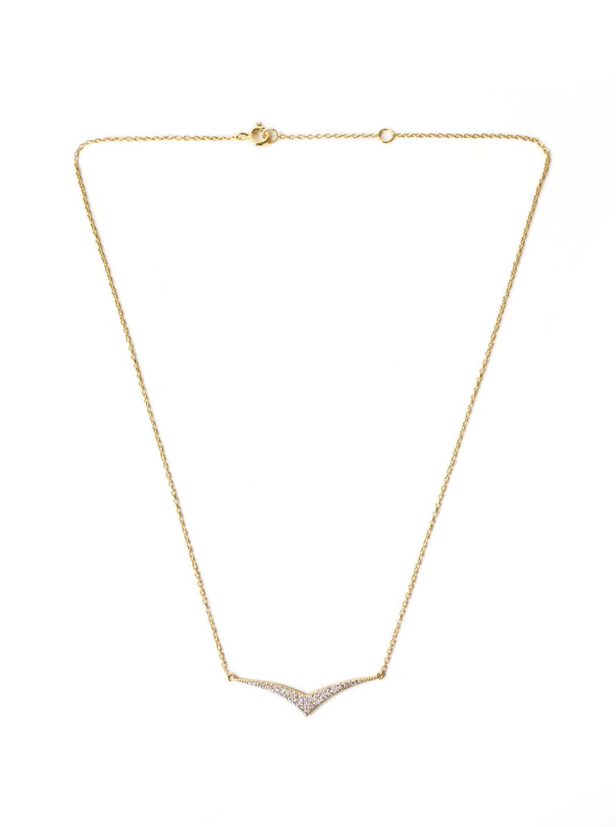 This dainty necklace features an abstract Gold Vermeil wing design paved in pavé cubic zirconia crystals. Wear alone for a minimal look or layer with other necklace styles for a fashion-forward appeal.