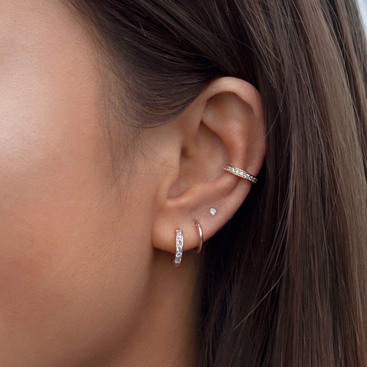 Sparkly Rose Gold earring cuff that will hug your cartilage perfectly. Perfect to wear alone or paired with other huggie earrings. Adjustable sizing.
