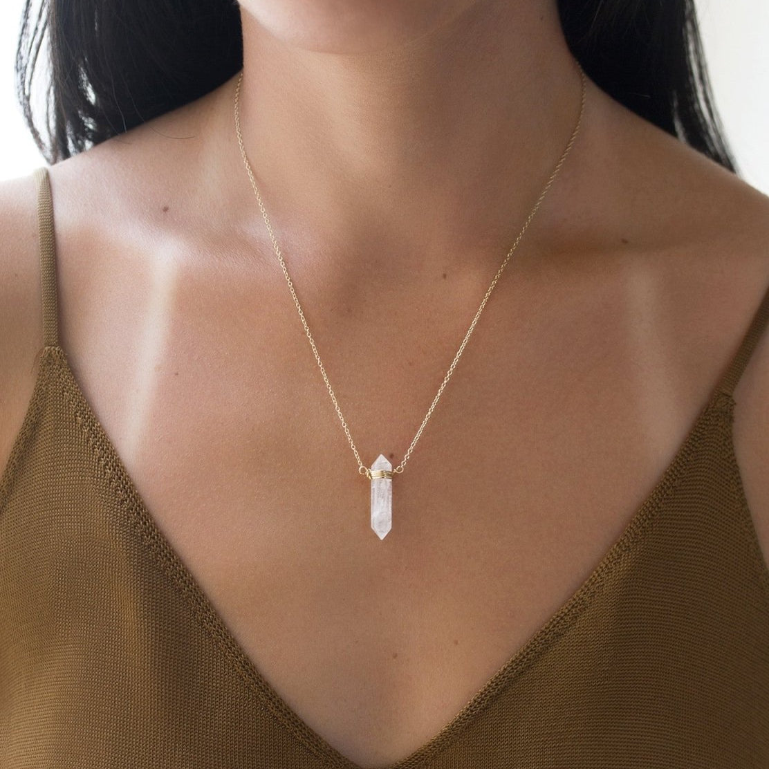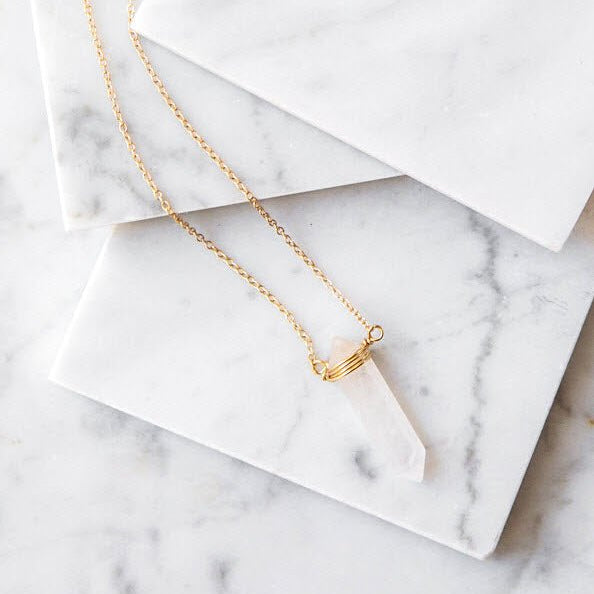This necklace features a delicate quartz pendant that is wire wrapped in Gold Vermeil. Layer with other pieces for a subtle statement or wear alone for minimalism.