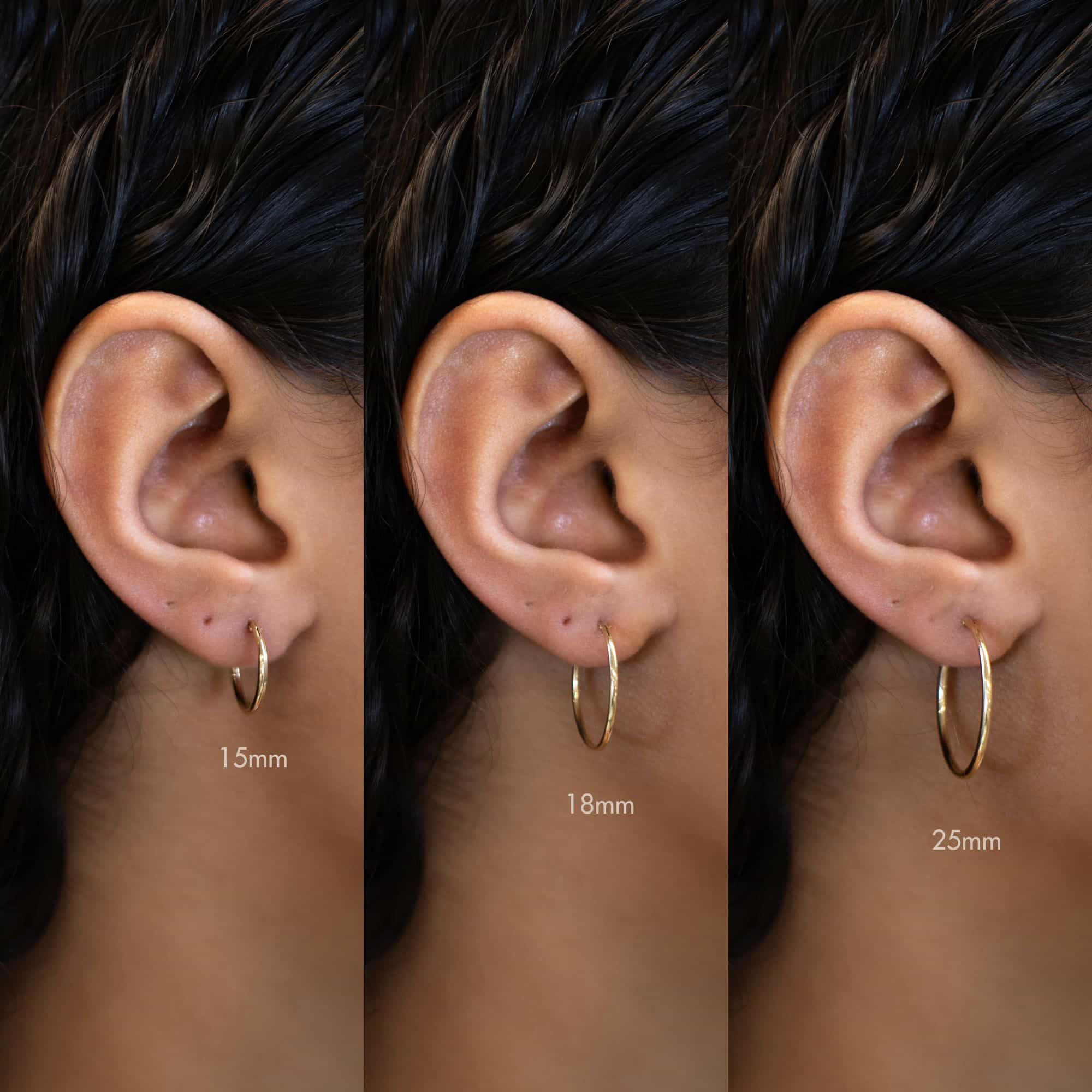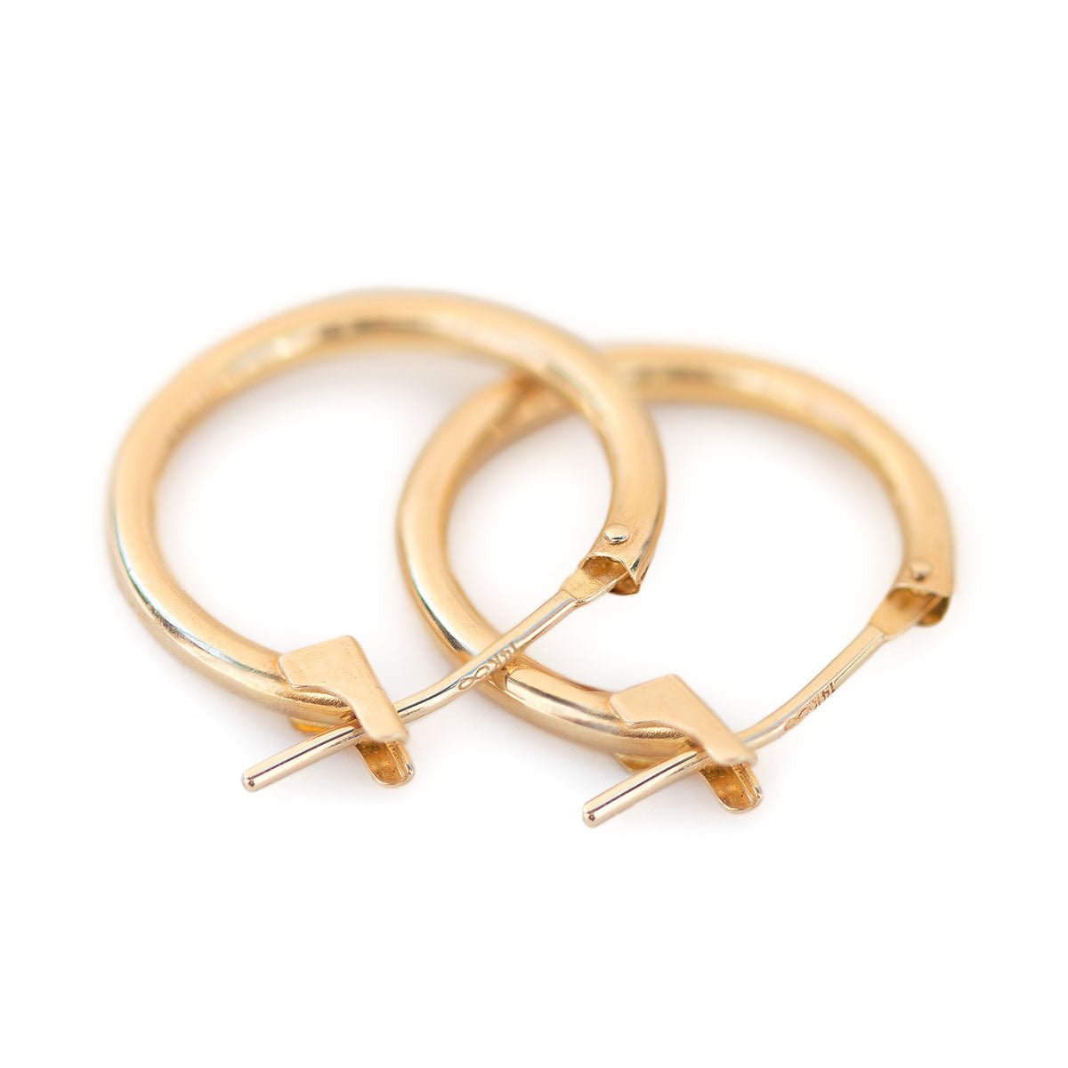 Classic 14K Solid Gold small hoop earrings that elegantly hang from your ear. Easy to put on and take off. Great to wear with smaller Huggies.
