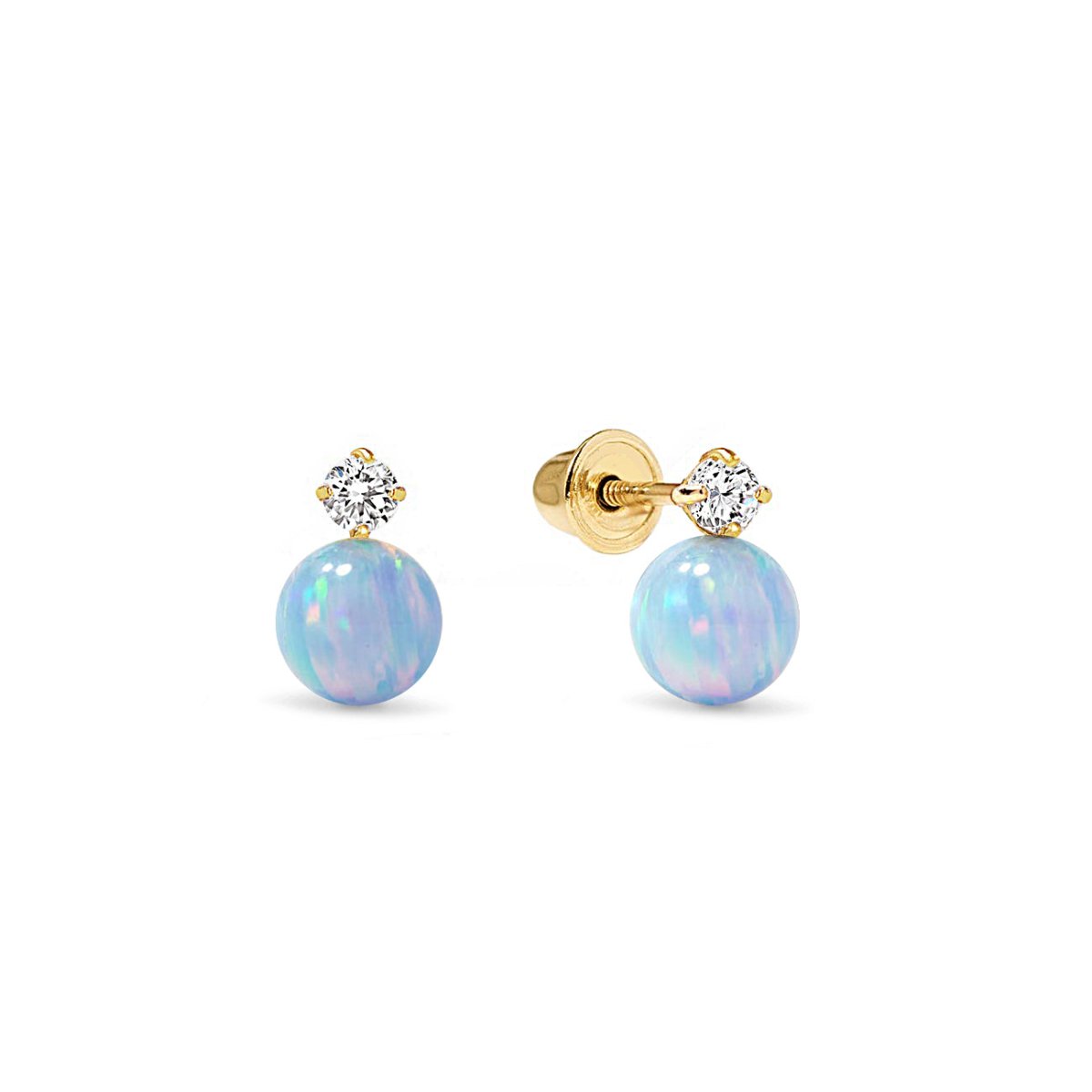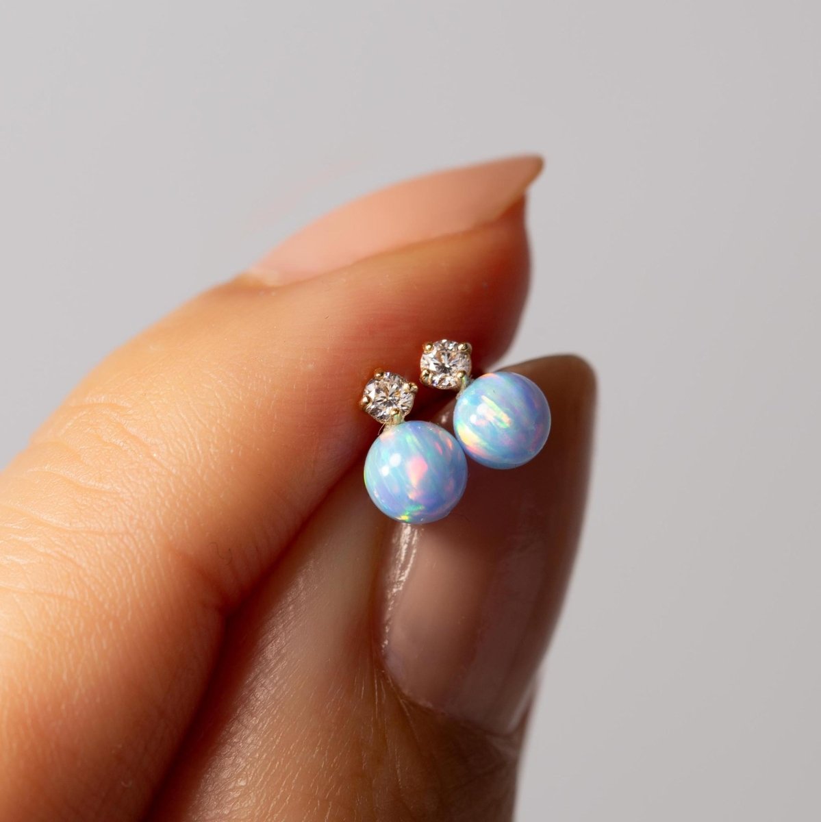 This timeless duo of blue opal and crystal is elegantly combined to create a stunning pair of studs! Designed with radiant lab-created opals, not only are they earth-friendly, our opals are heat and moisture-resistant and won't crack or yellow.