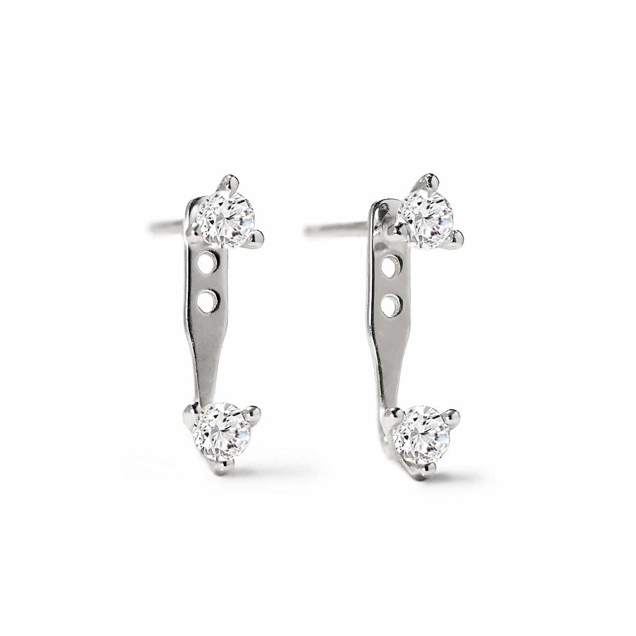 Silver crystal ear jacket add a sleek, modern twist to your everyday ear stack. Lightweight and adjustable for the perfect fit. Shine bright with our eye-catching solitaire earrings!