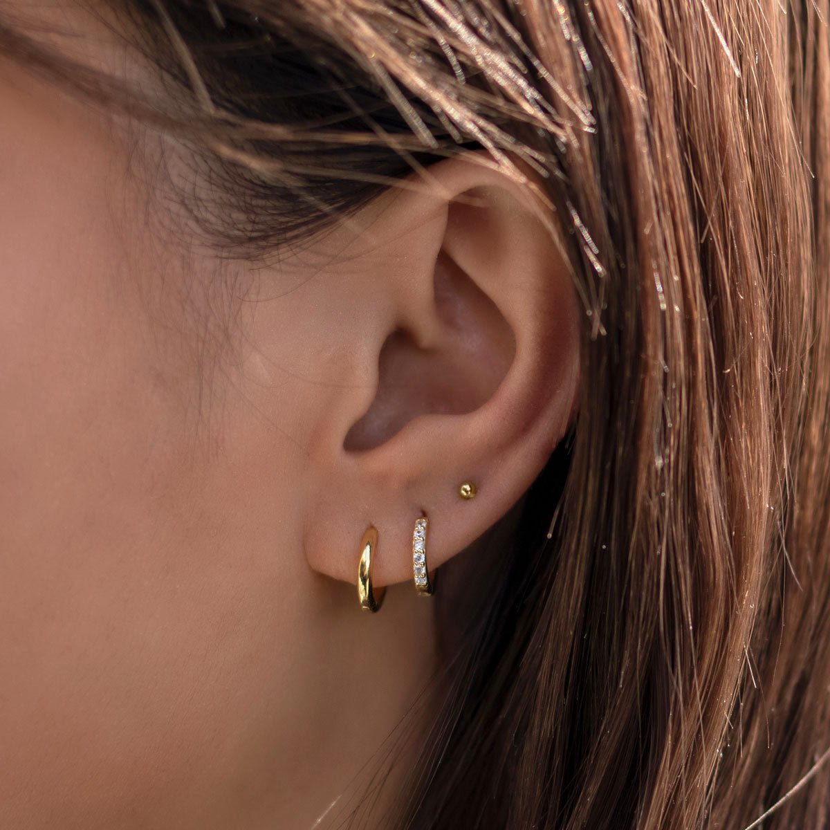 Classic minimal huggie earrings gold that hug the ear perfectly. Easy to put on and take off, fits all earlobe sizes for everyday wear.