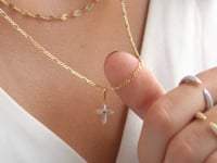 Customize your jewelry collection with our Gold Vermeil Tiny Cross Charm. Designed to elevate any bracelet, necklace or anklet. This charm brings a touch of elegance to your style.