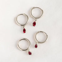 These 14K White Gold small hoop earrings feature a tiny Ruby gemstone. Great Birthstone gift! Gold makes these pair tarnish-free!
