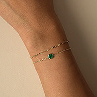A single Semi-Precious Malachite Circle adorns a minimal 14K Solid Yellow Gold chain. The perfect gift for May birthdays