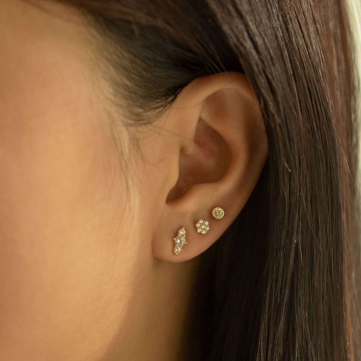 Tiny 14K Gold Pave studs for the ultimate mixing and matching. Perfect for a second or third piercing.
