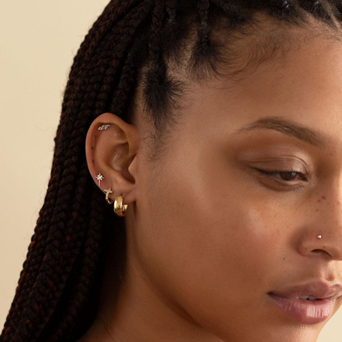 Bold Gold mini hoop earrings that hug your ear perfectly. Perfect to wear alone or paired with other dainty earrings.