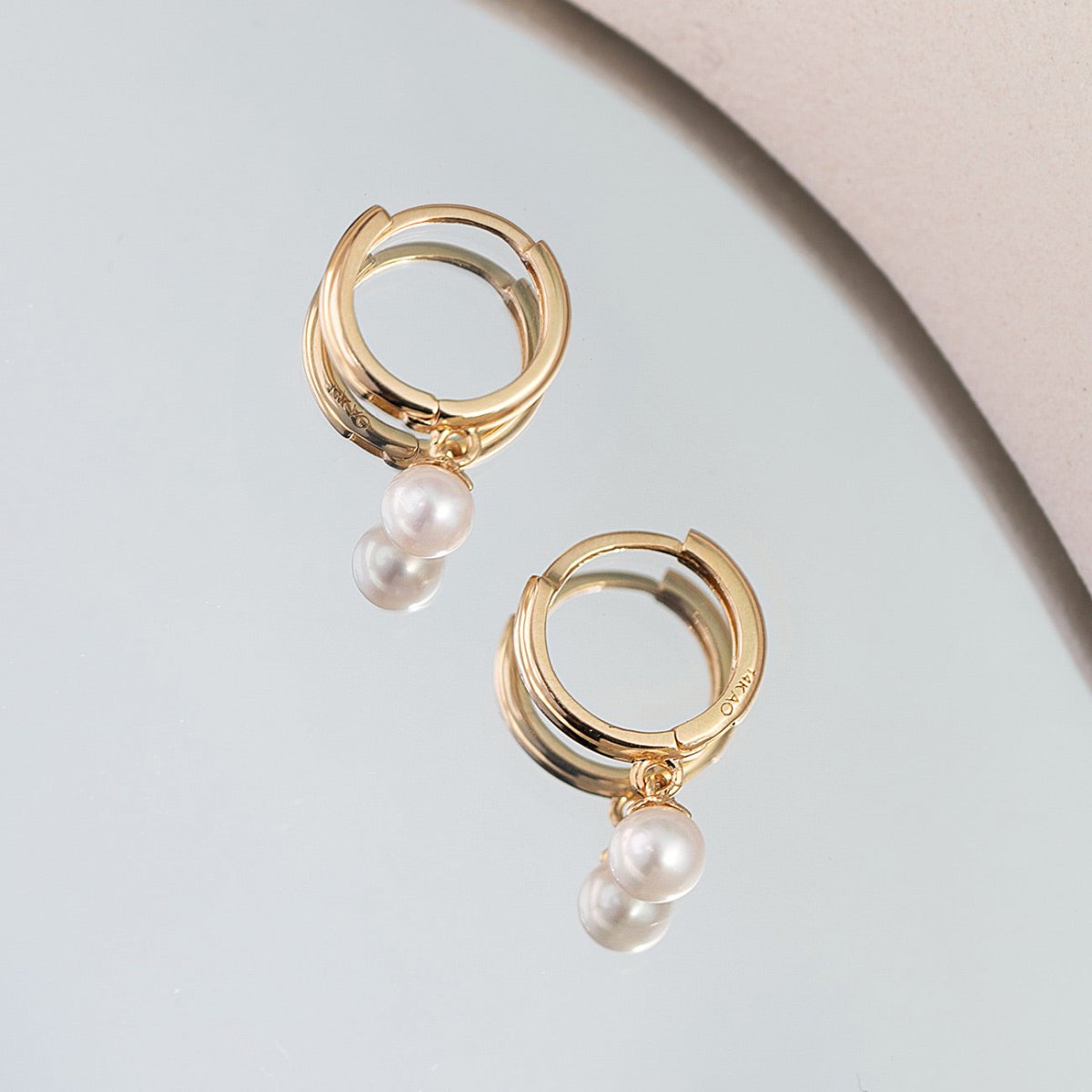 This 14K Gold Small Hoop earrings feature a tiny dangling Pearl. Solid Gold makes these pair tarnish-free! Smaller in size-Great for smaller lobes or second piercings.