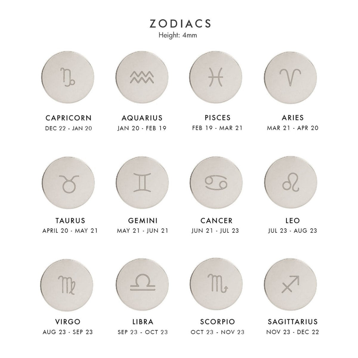 - Zodiac engraving height 4mm