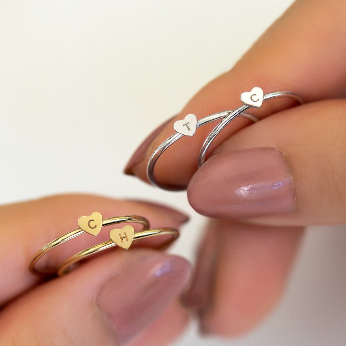 Engrave your own initial onto this very tiny heart ring. Made to order, ships out in 2-3 business days.