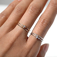 Our best-selling silver ring set featuring the Tiny Duo and Shimmer Ring. This minimalist stack combines delicate sparkle and texture for an elegant, everyday layered look.