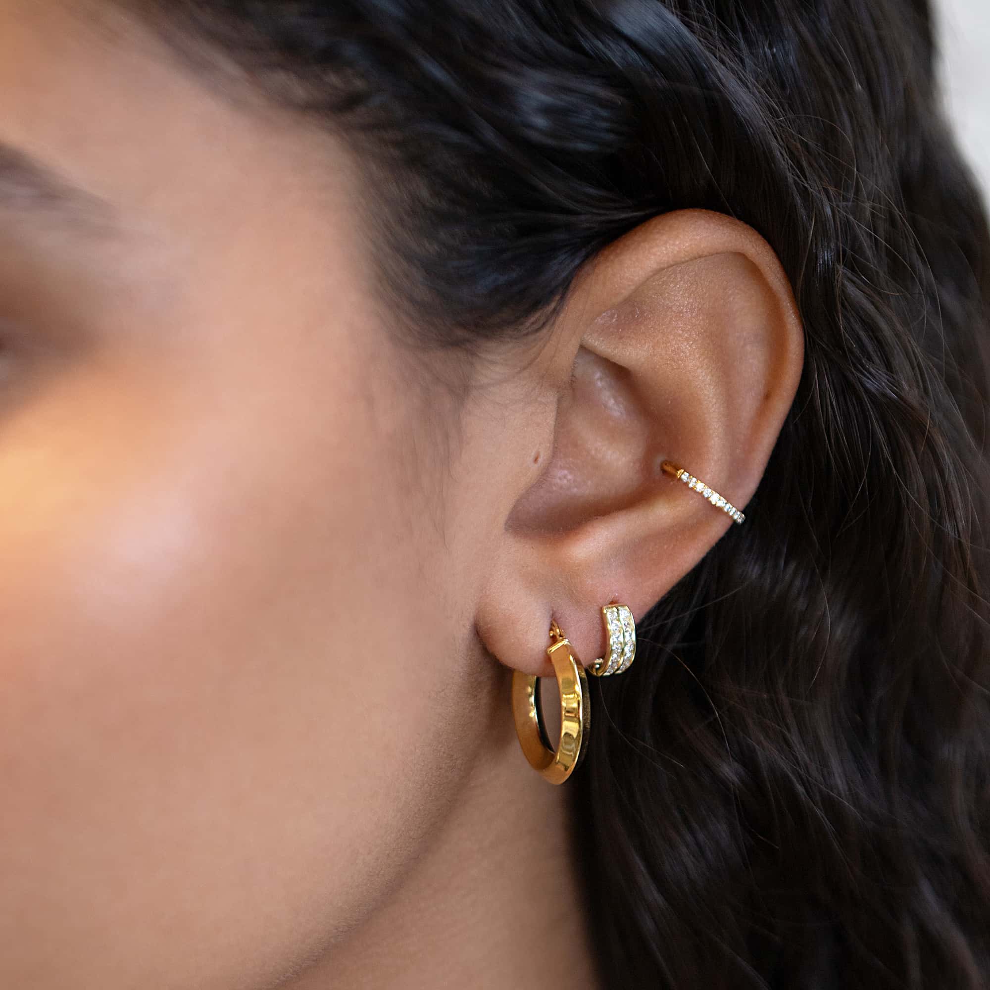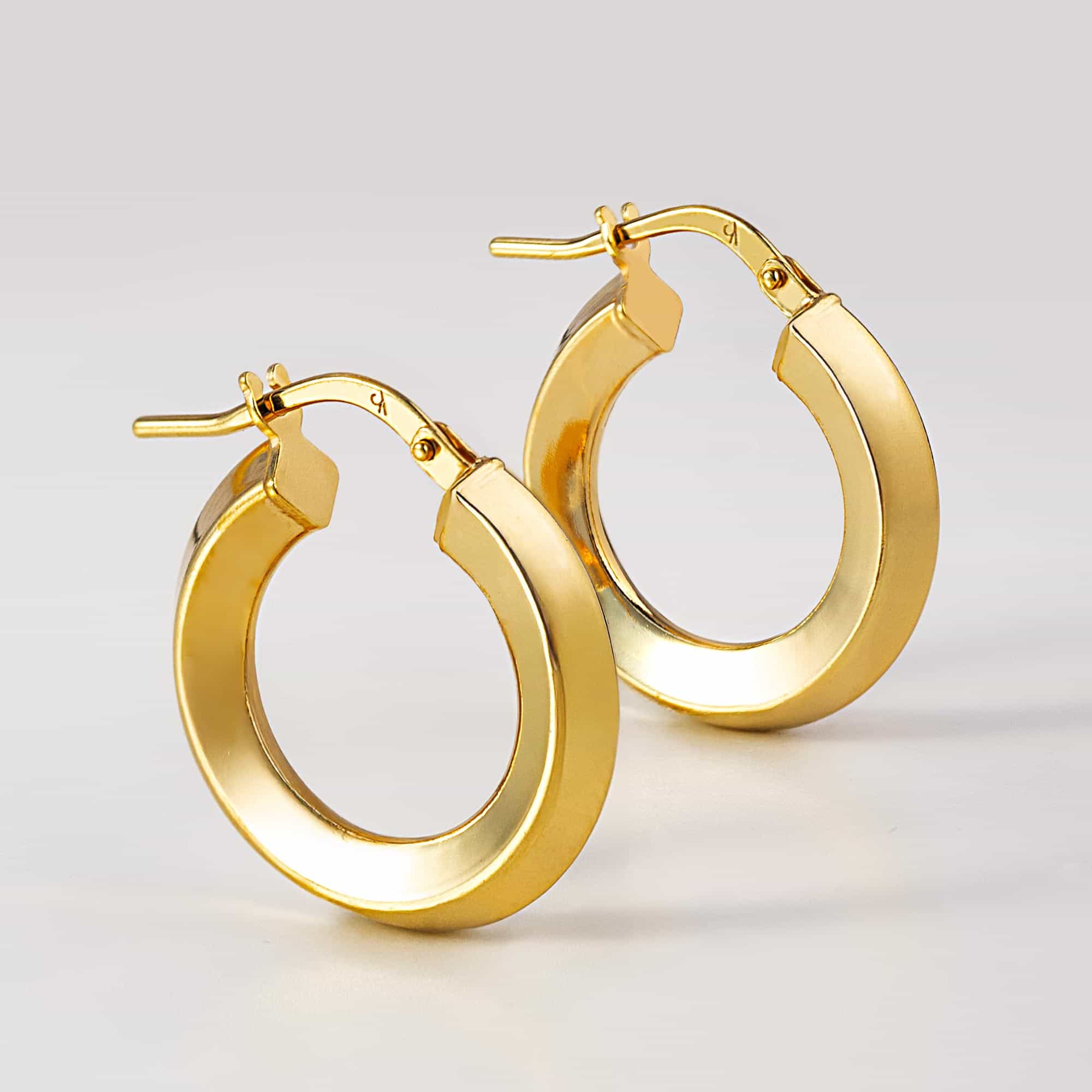 Sleek and modern, our beveled mini gold hoops earrings add a subtle edge to your everyday style.