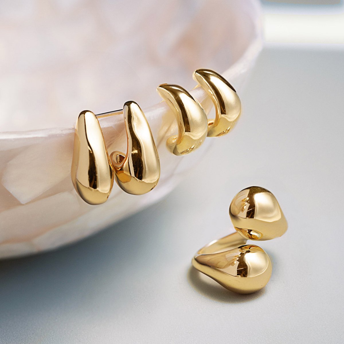 These stylish gold chunky hoops feature a unique J shape, adding a bold yet refined touch that’s perfect for elevating your everyday wear or special occasions.