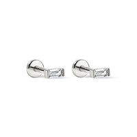 These Sterling Silver crystal Baguette: studs features a front threaded flat back closure. Worn on helix, flat, conch and upper lobe piercings.