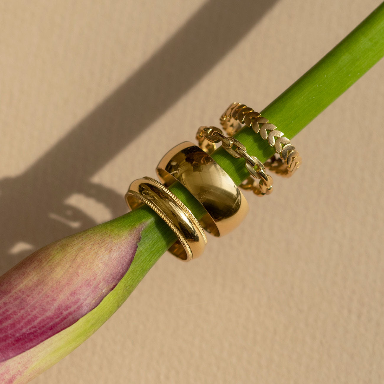 A bold, sculptural double-dome design crafted in polished gold vermeil, creating a sleek and modern statement ring that elevates any look with refined minimal style.