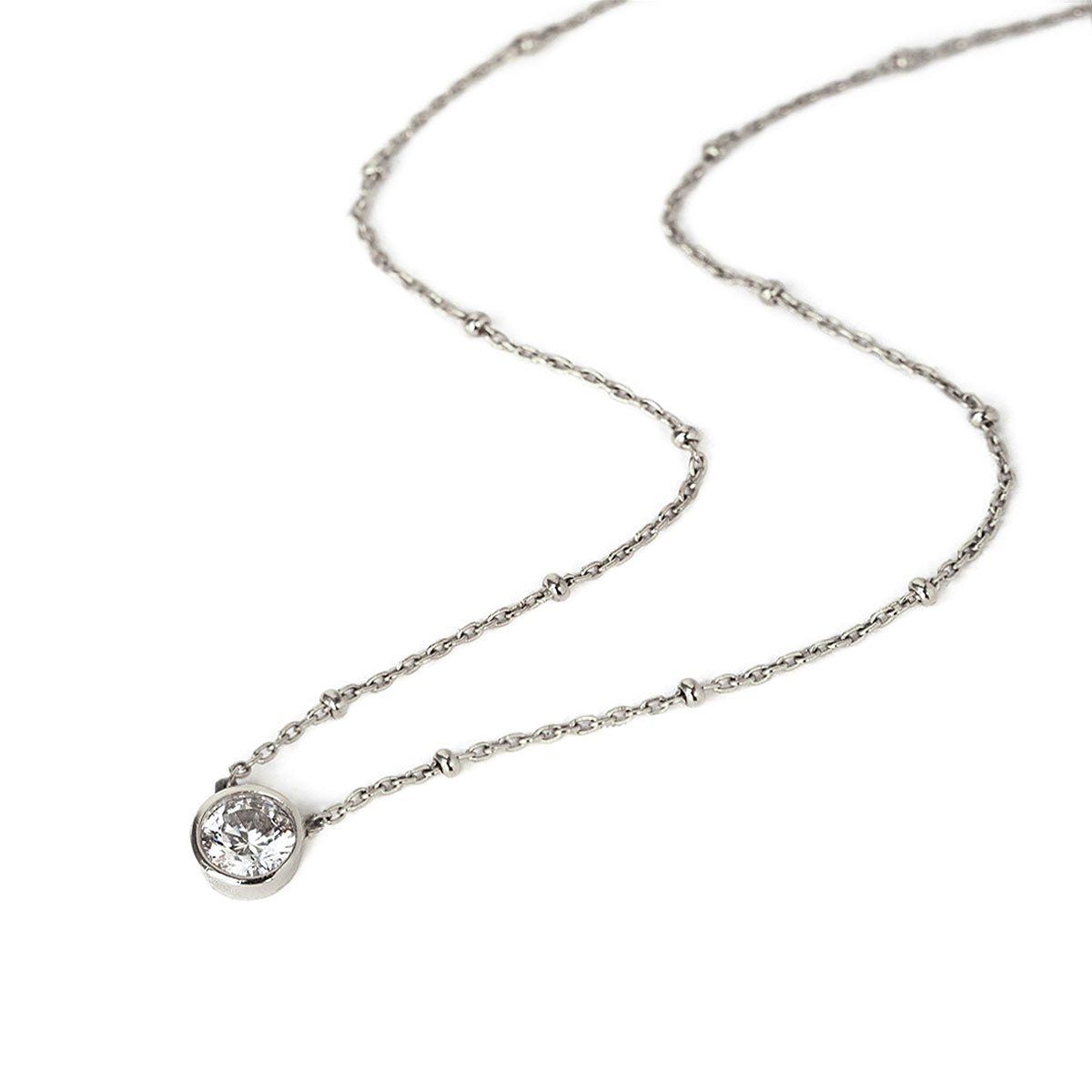 This elegant silver pendant necklace features a bezel-set solitaire crystal on a delicate beaded chain from our signature O Collection. Our patented connectors let you mix, match, or wear each separately. Learn more.