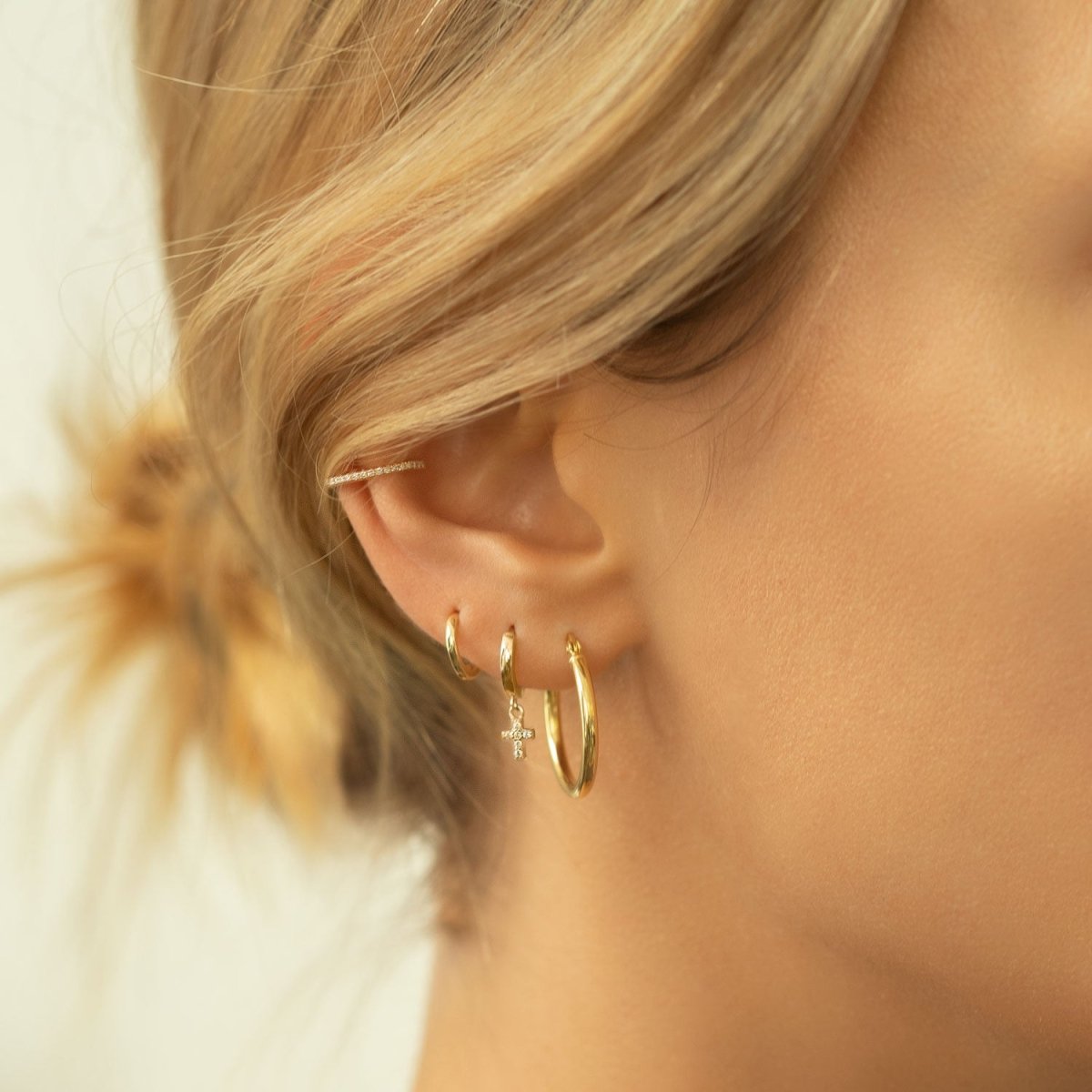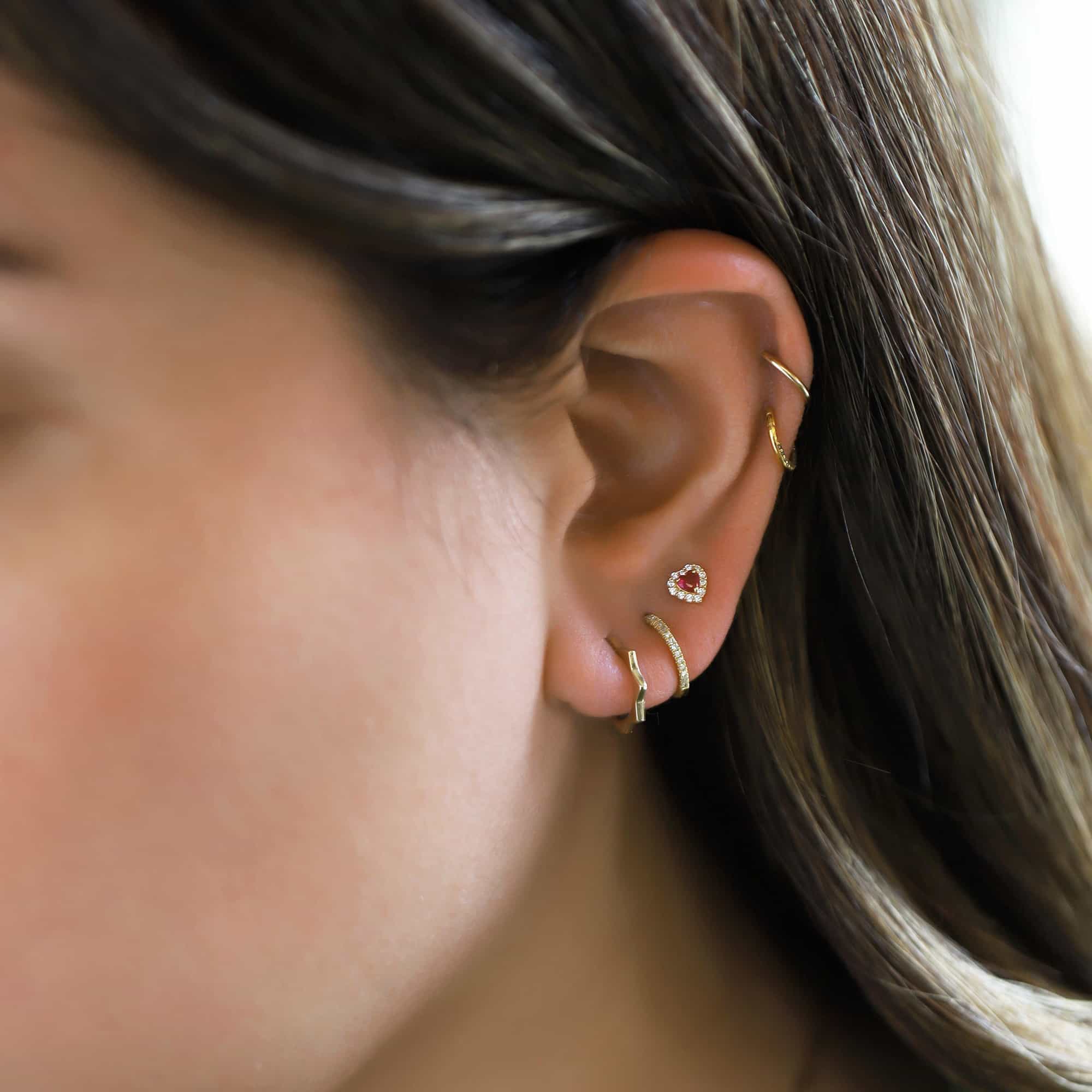 This 14K Gold earring is great for your cartilage piercing. True to size, view our size chart for the right size.Wear on upper-lobe, helix piercings.