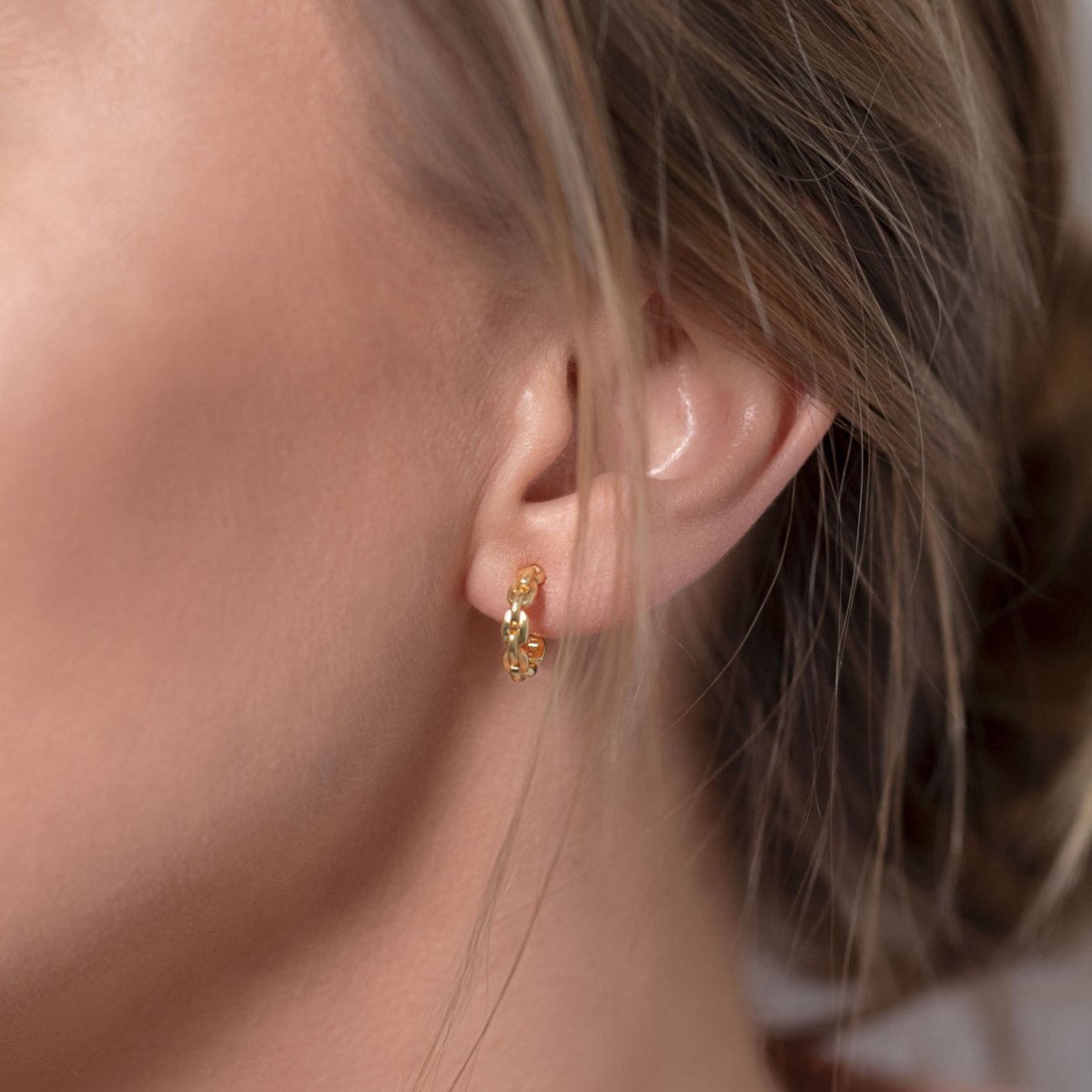 This Link chain hoop earring is minimal and bold- The small hoop size will hug your ear perfectly. Perfect for all ear lobe sizes.