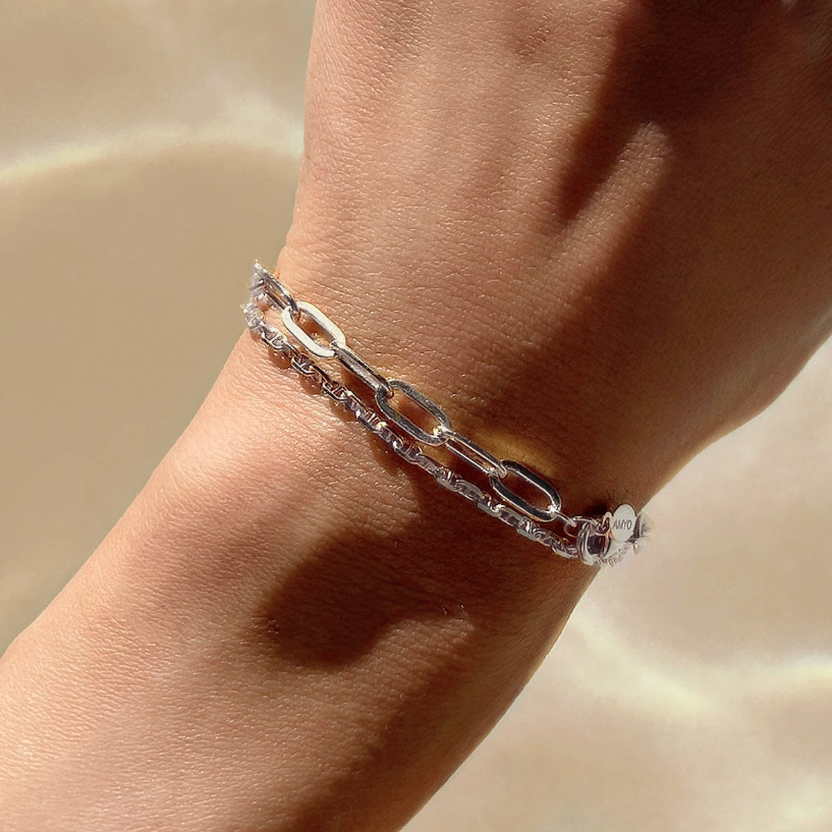 This intricate silver bracelet features a double-faceted solitaire CZ on an Italian Singapore chain. Great for layering with other dainty bracelets.