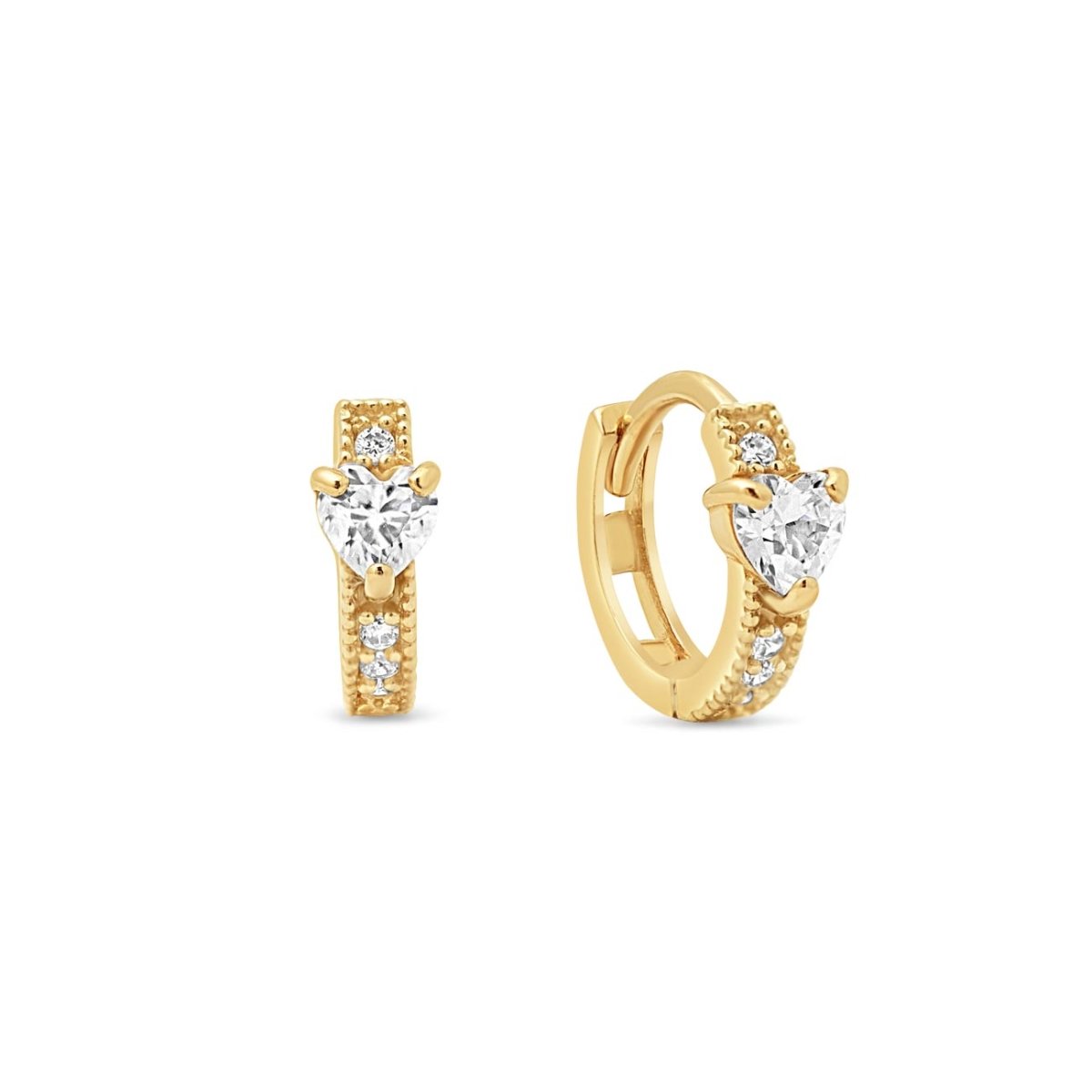 These 14K Solid Gold Huggie earrings are set with a tiny Heart Moissanite stone. Note: these are tiny-Great for smaller lobes or second, cartilage piercings.