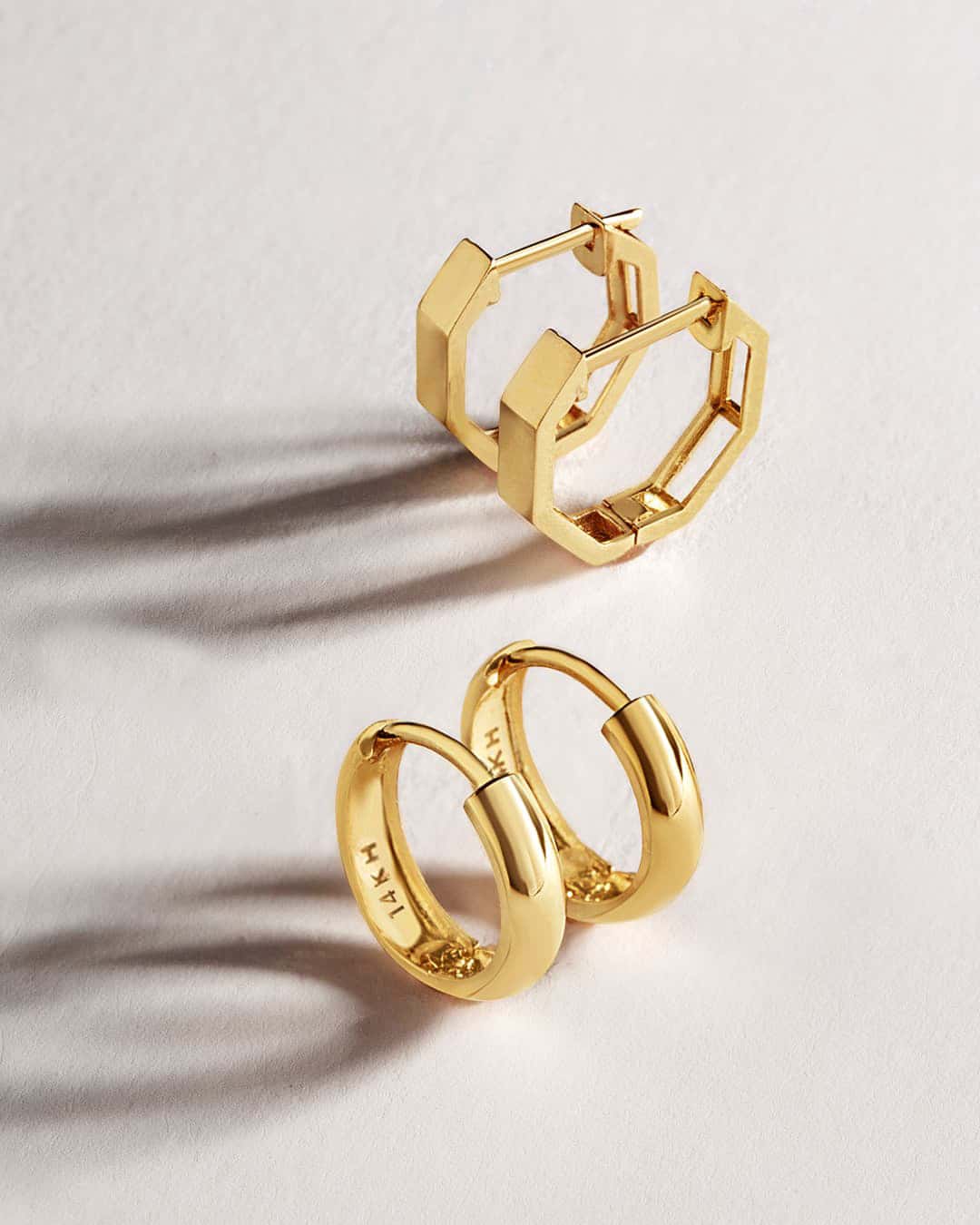 Whether you’re searching for classic medium styles or delicate 14K gold huggie hoop earrings. Perfect for sensitive skin and daily wear, our small gold hoops in 14K gold effortlessly pair with cartilage & helix hoops for a chic ear stack. Prefer silver? Browse our beautiful collection of silver hoop earrings.