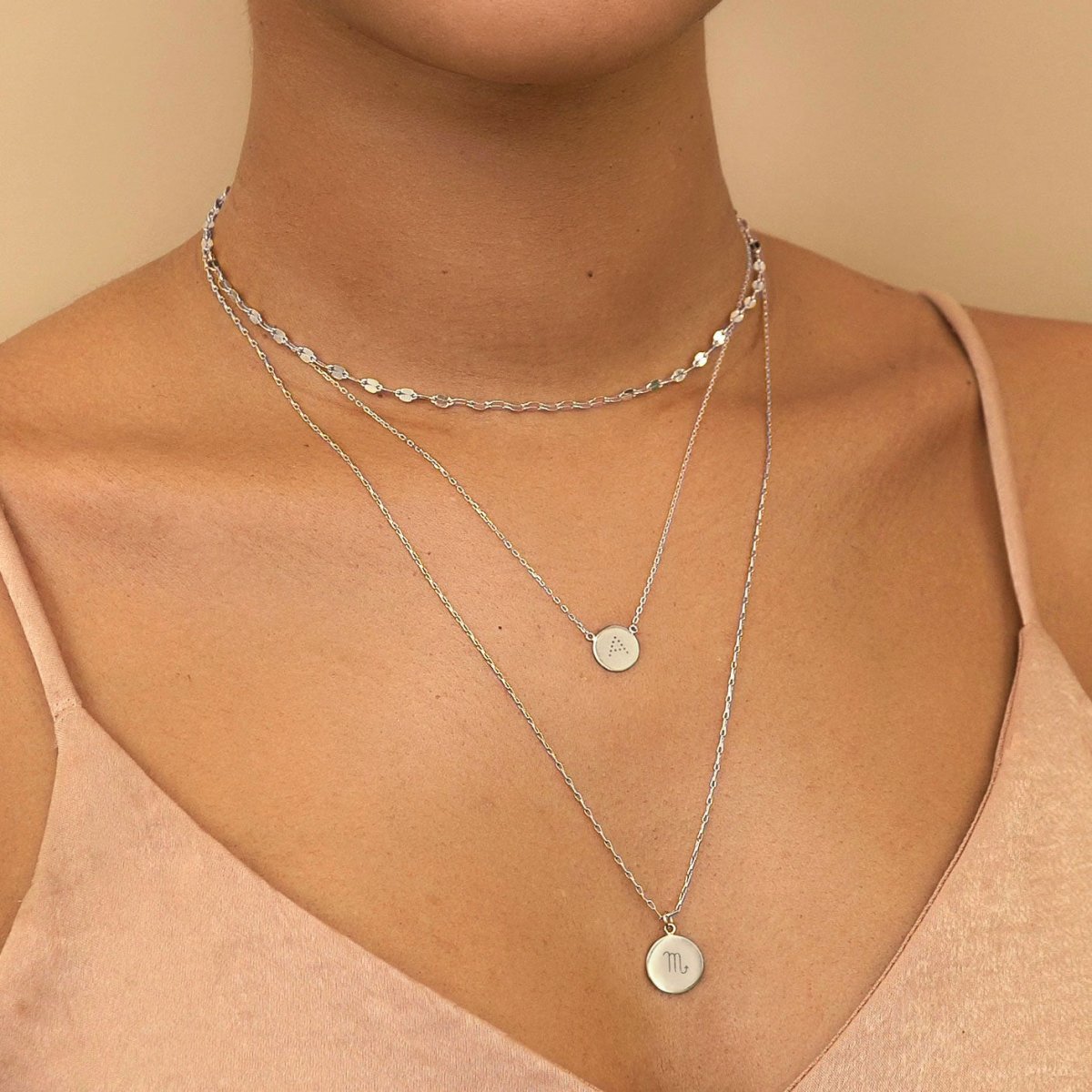 The perfect custom necklace gift, engrave your own initial or a loved one’s. This silver pendant necklace features a small round disc on a delicate diamond cut chain. Our O Collection patented connectors let you mix, match, or wear each separately.