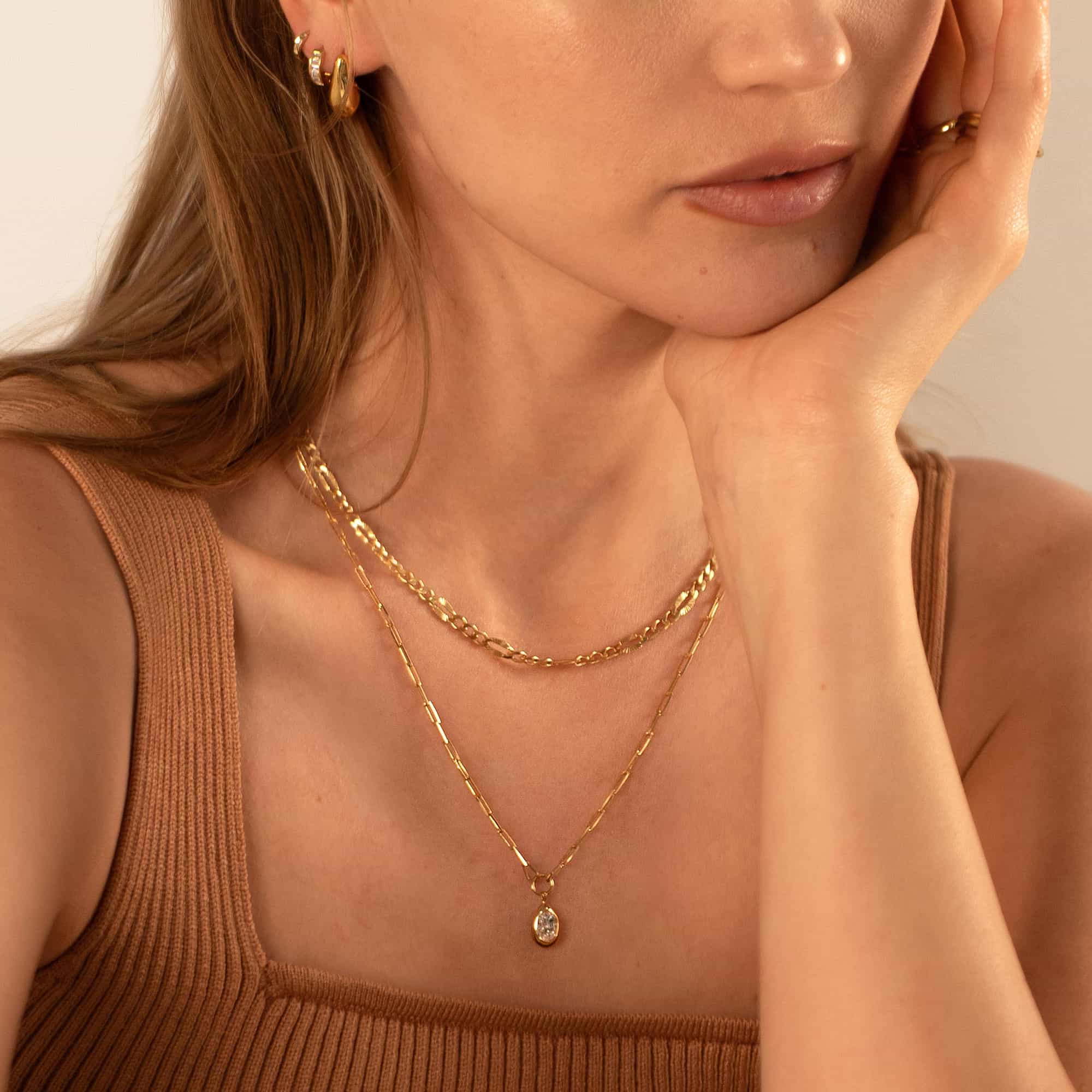 This gold pendant necklace features a stunning crystal sculptural drop on a delicate paperclip chain for a refined, modern touch. Our O Collection patented connectors let you mix, match, or wear each separately.