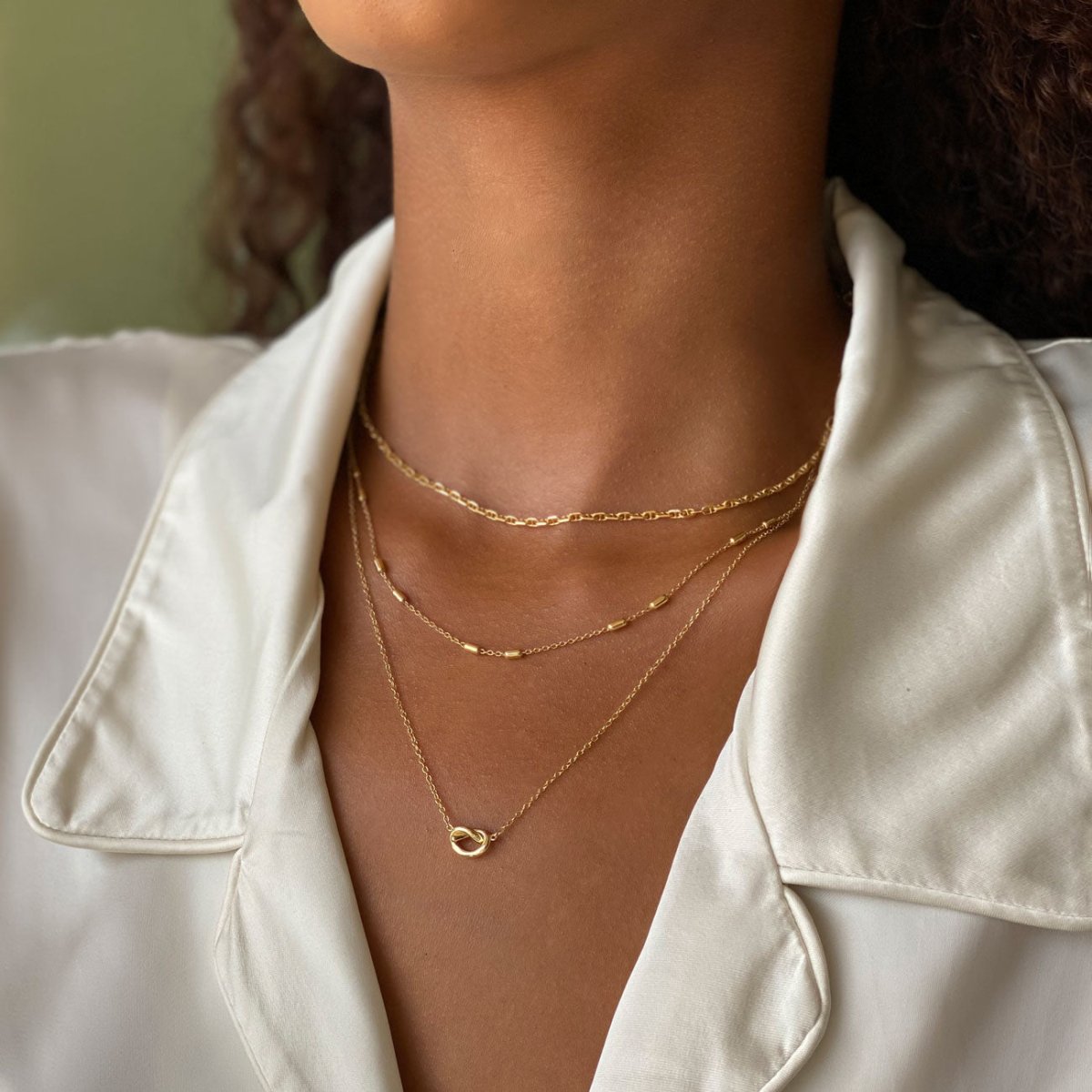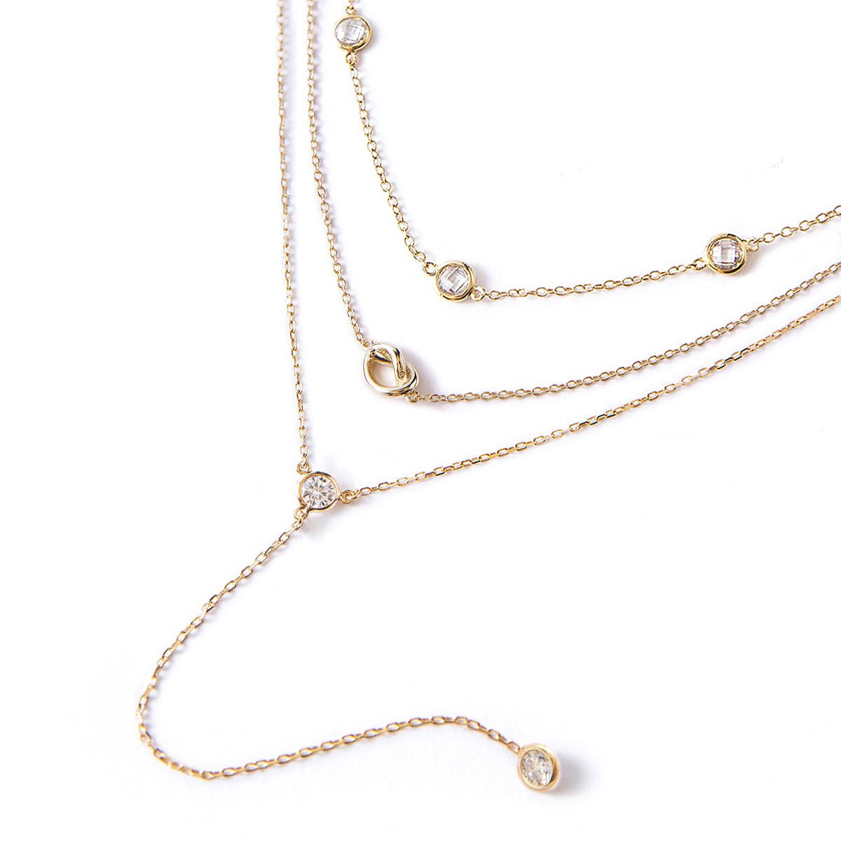 A dainty gold knot pendant necklace on a delicate diamond cut chain from our signature O Collection. Our patented connectors let you mix, match, or wear each separately.