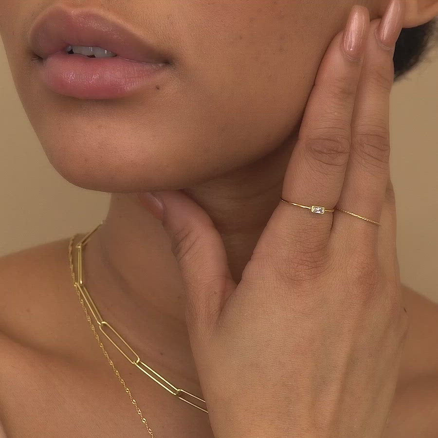 Our Minimalist style Baguette bezel Gold Vermeil ring makes for a great every-day piece. It can stand alone for a minimal look and is the perfect accent to all our other rings and bands. Featured on Popsugar