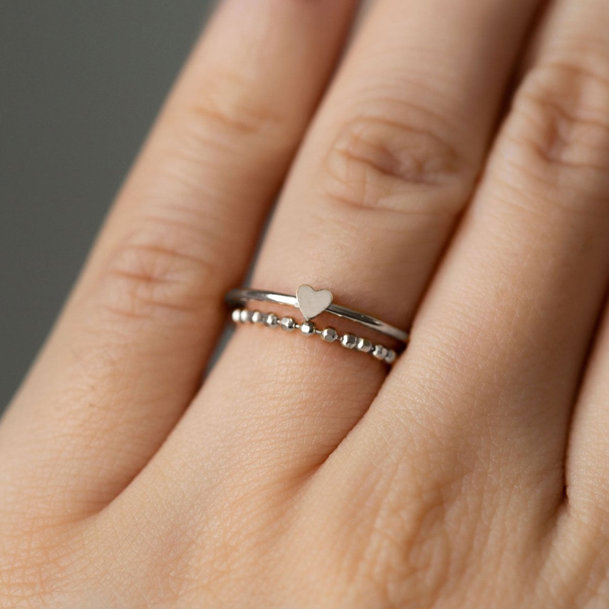 A modern tiny Silver heart on a classic thin band. A must-have for Stacker Rings. This precious metal ring will last a lifetime!