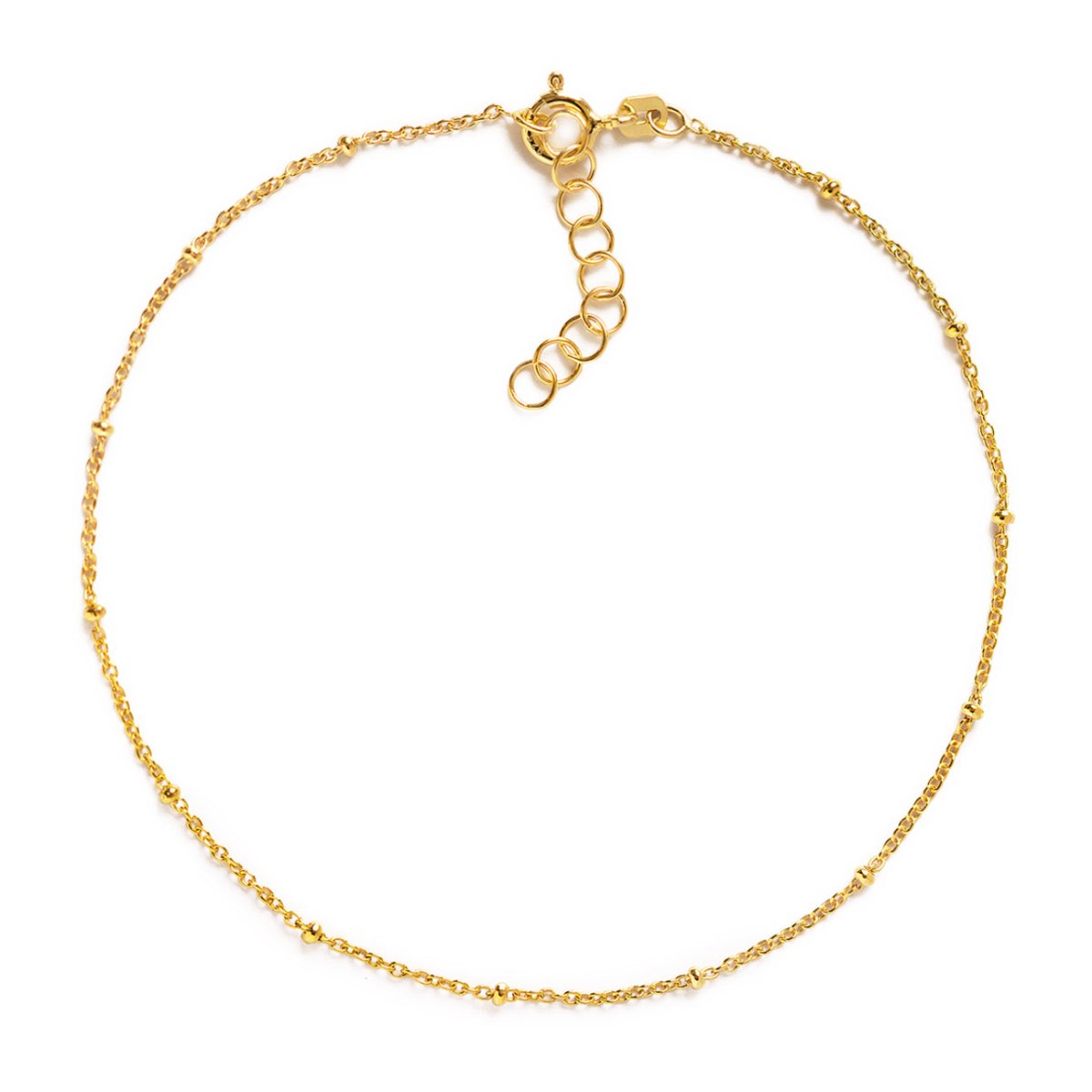 This elegant gold anklet features small beads on a delicate diamond-cut cable chain.