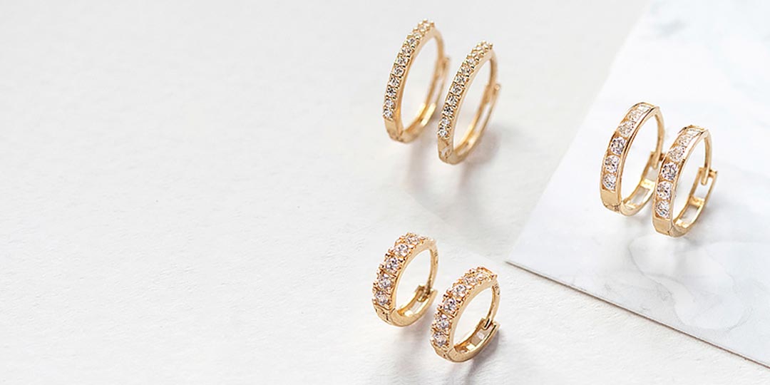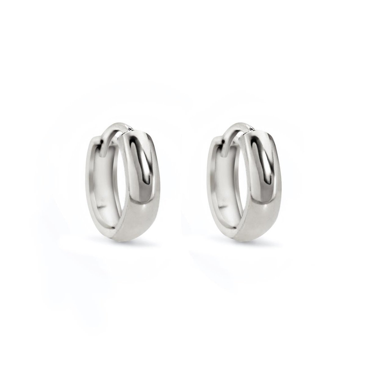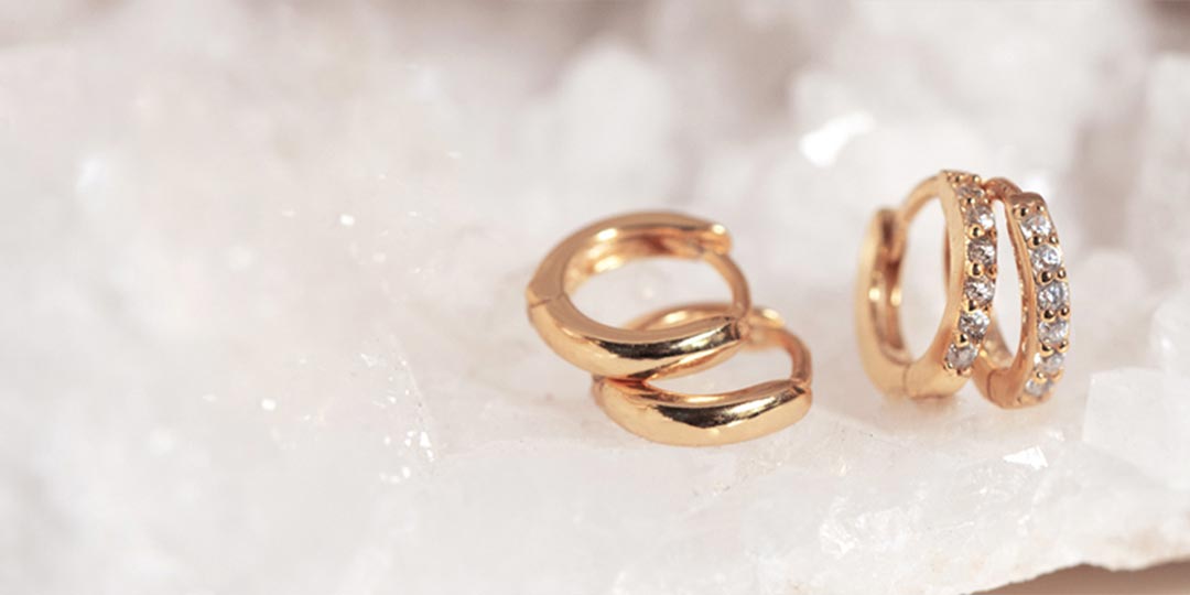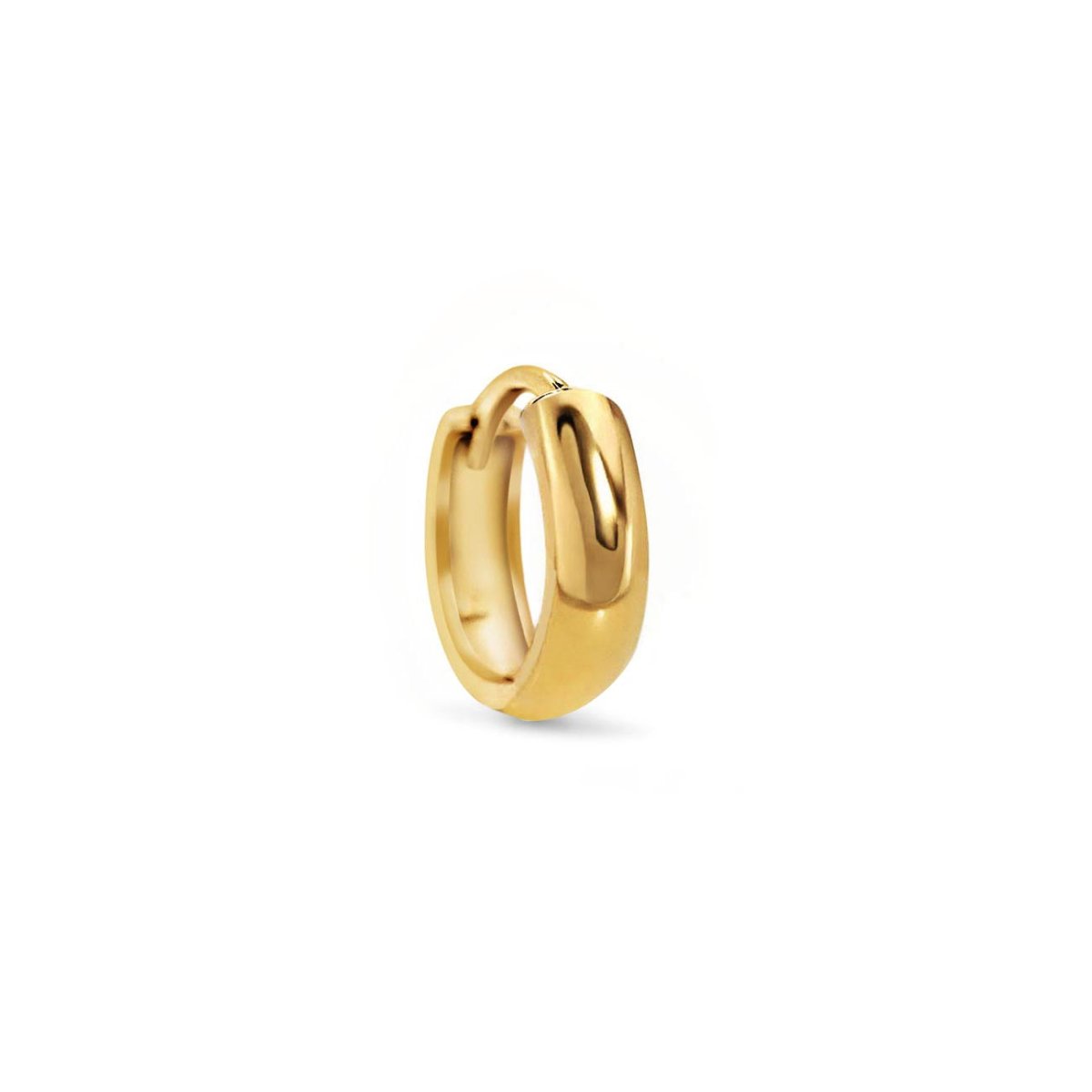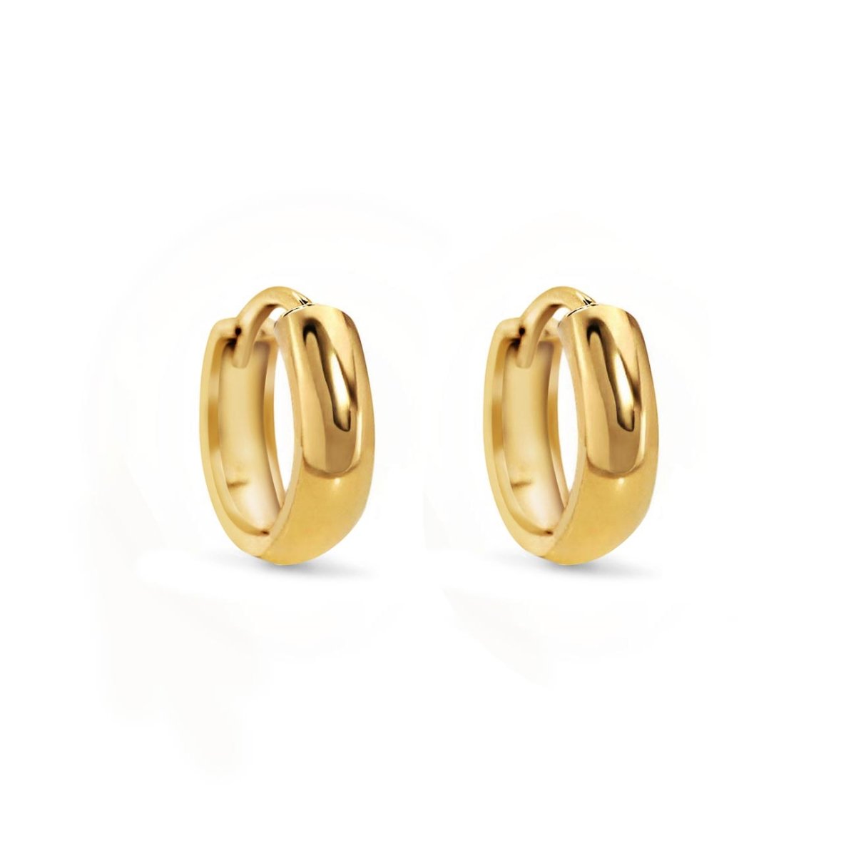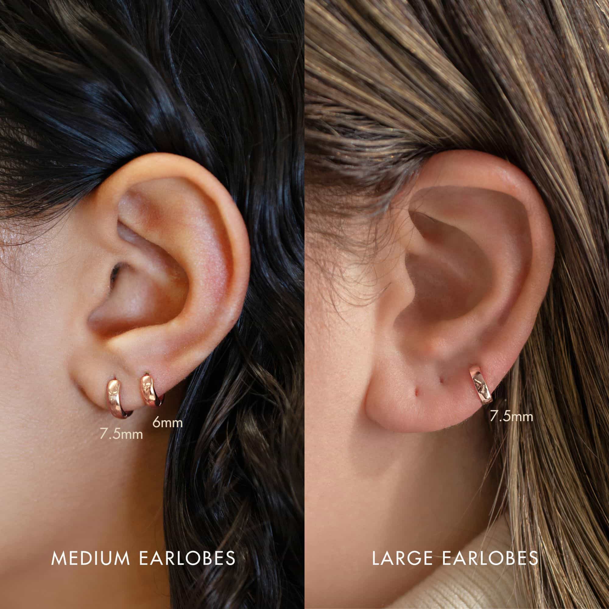 14K Solid Rose Gold small huggie earrings with a thick width. Perfect to wear alone or stacked with other huggies in our collection.