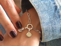 This silver engraved disc charm is perfect to personalized any of our bracelets or necklaces.