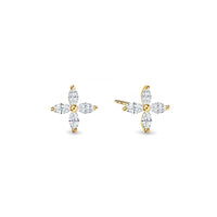 Gold flower stud earrings with marquise-cut cubic zirconia petals. Lightweight and sparkly. These will easily become your day-night accessory.