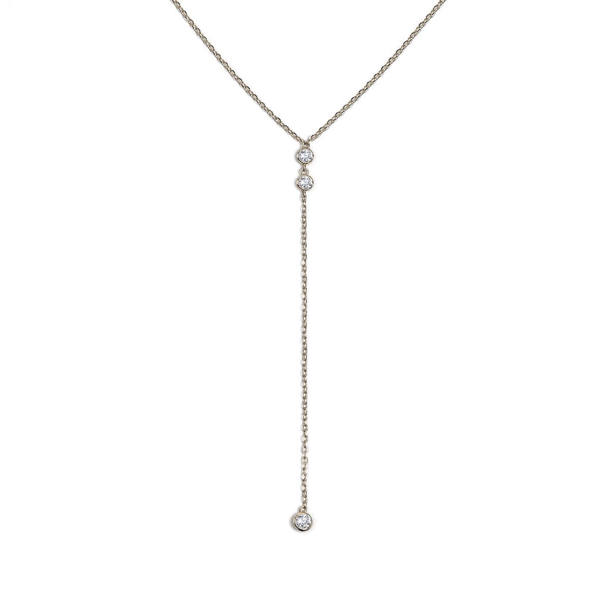 A sleek silver lariat necklace with white zirconia accents paired with a delicate Italian chain. Our O Collection patented connectors let you mix, match, or wear each separately.
