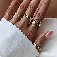 This modern gold double rope band ring features a sleek layered design with adjustable sizing and a comfort-fit feel. A chic everyday stacking ring with effortless style.